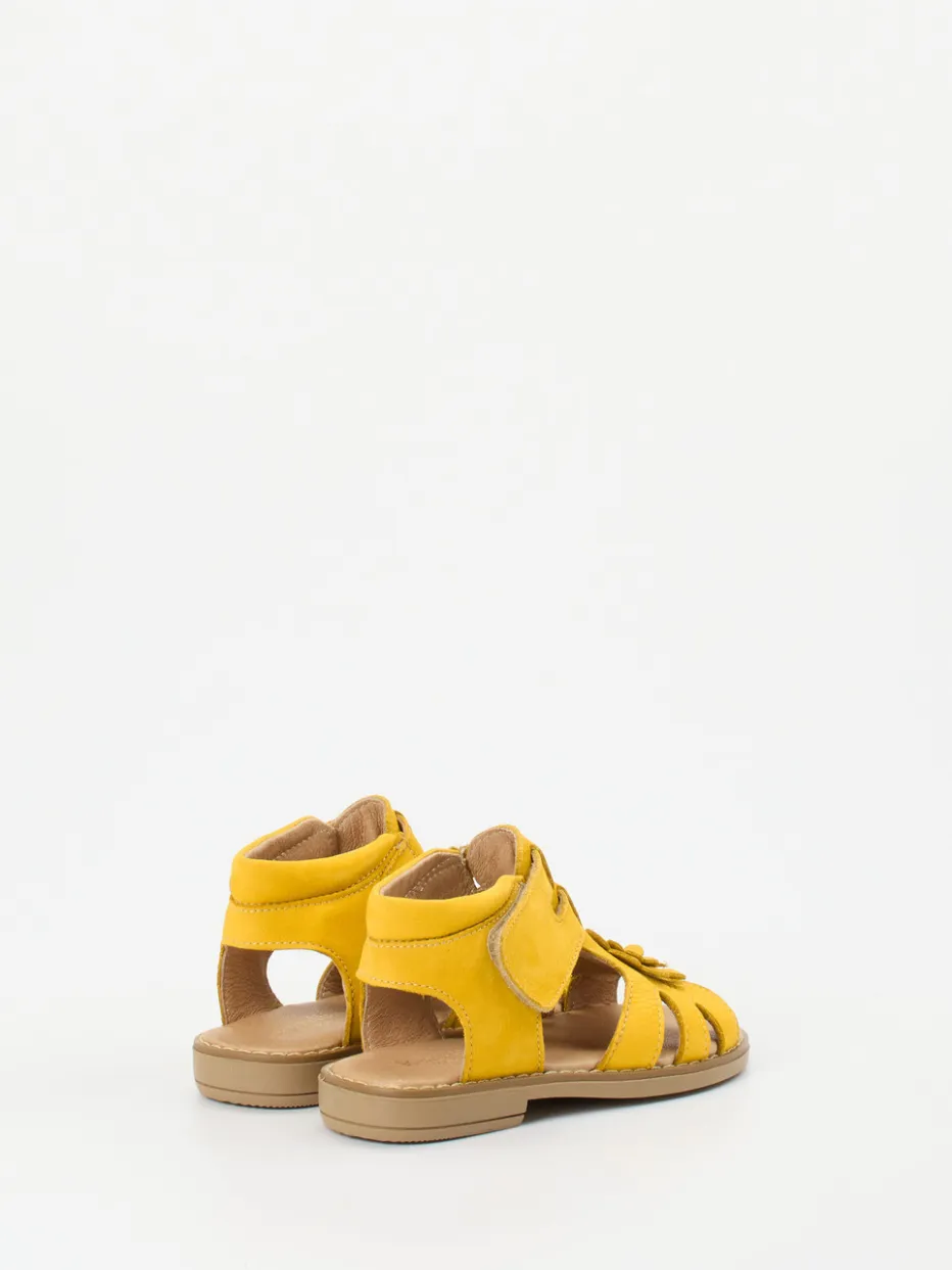 Verspielte Leichtigkeit für Sommertage.Ralph Harrison Classic präsentiert mit dieser Kindersandale einen stilvollen Begleiter für Alltag und Urlaub. Das sonnengelbe Nubukleder mit feiner Narbung vermittelt sommerliche Frische und ist angenehm weich gearbeitet. Die offene Silhouette bietet guten Halt im Fersenbereich, während der praktische Klettverschluss ein eigenständiges An- und Ausziehen erleichtert. Blickfang ist die florale Applikation mit funkelndem Strassstein. Die flexible Gummisohle mit rutschhemmendem Blumenprofil rundet die Alltagstauglichkeit ab. Ideal kombinierbar mit leichten Sommerkleidern oder Shorts für temperamentvolle Kinderlooks. Komfort und kindgerechtes Design vereinen sich in einem charmanten Sommermodell mit Qualitätssanspruch.