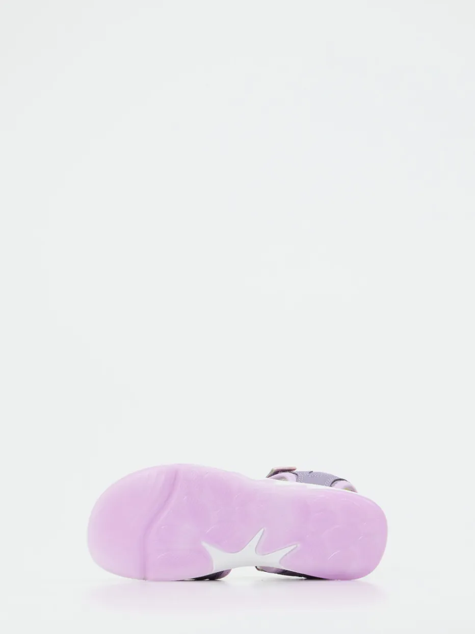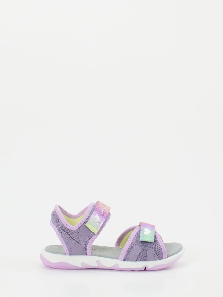 Farbenfroher Sommerbegleiter für kleine Abenteurerinnen.Superfit bringt mit dieser Mädchensandale aus der Kategorie Klettsandalen einen besonders verspielten Stil hervor. Ideal für Freizeit und Urlaub überzeugt das Modell aus robustem Synthetikmaterial mit Mesh-Einsätzen durch seine angenehme Haptik und gute Luftzirkulation. Das dominante Flieder wird durch pastellorange und mintgrüne Akzente ergänzt. Regenbogenfarbene Klettverschlüsse mit reflektierenden Herzchen verleihen dem ergonomischen Design einen verspielten Touch. Eine rutschhemmende PU-Gummisohle rundet die Alltagstauglichkeit optimal ab – besonders auf sommerlichen Untergründen. Der Look harmoniert ideal mit farblich abgestimmtem Rucksack oder Mütze. Sitzen bequem, sehen fröhlich aus – typisch Superfit.