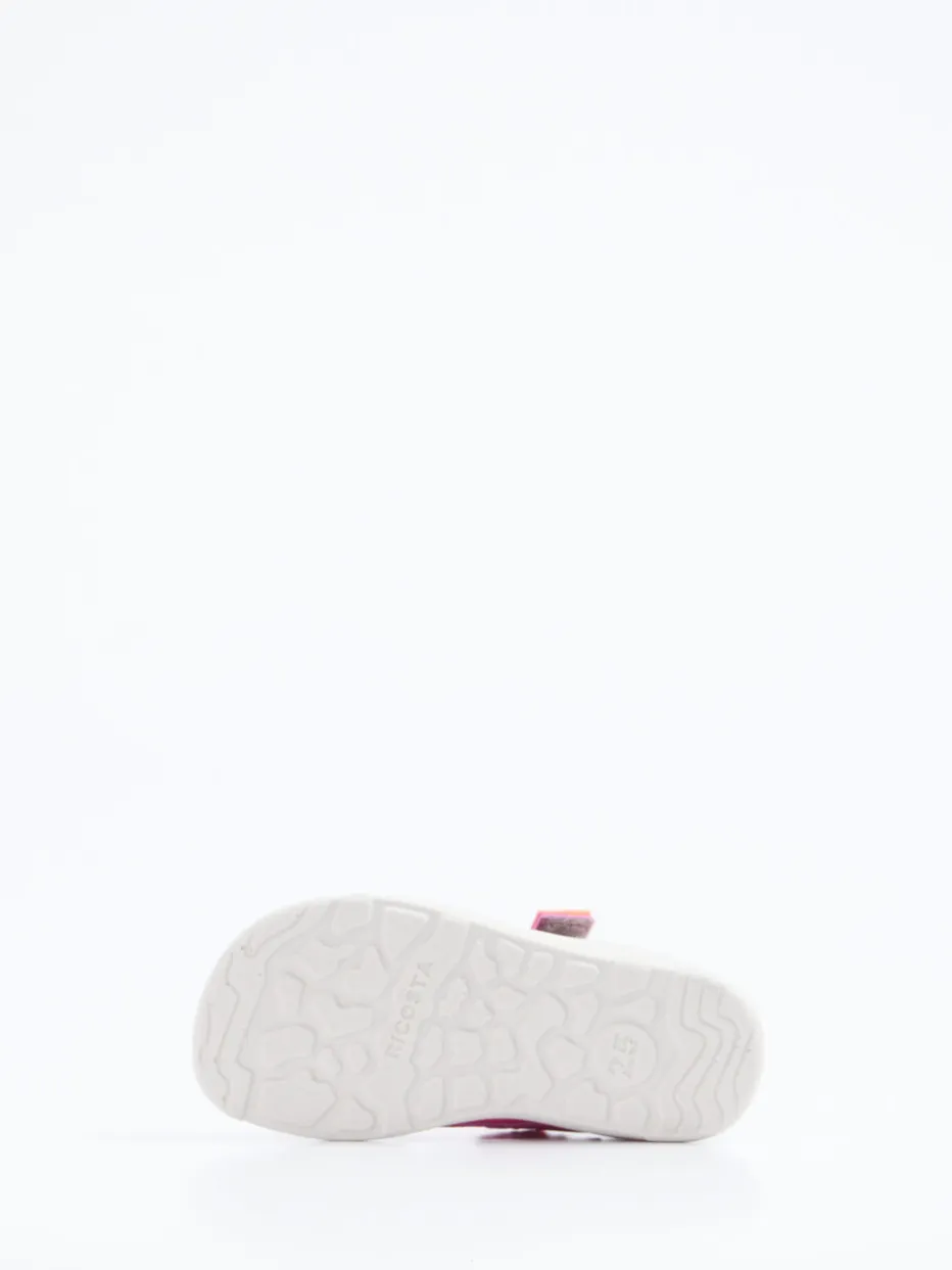 Farbstark durch den Sommer.Ricosta präsentiert eine Klettsandale für Kinder, die Funktionalität und Look perfekt vereint. Ideal für aktive Sommertage überzeugt sie mit pflegeleichtem Synthetik, das in matter Oberfläche und knalligem Pink auftritt. Kontrastfarbene Riemen in Orange sorgen für moderne Color-Blocking-Effekte. Der komfortable Sitz wird durch gepolsterte Textil-Riemen und einfache Klettverschlüsse unterstützt. Dank der leichten, flexiblen PU-Sohle eignet sich das Modell für Alltag, Spielplatz oder Strand. Inspiriert vom Y2K-Trend spricht es trendbewusste Eltern an. Ein stylisch-bequemer Begleiter mit bewährter Ricosta-Qualität.