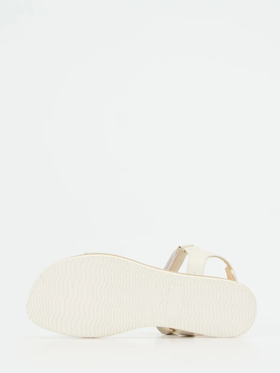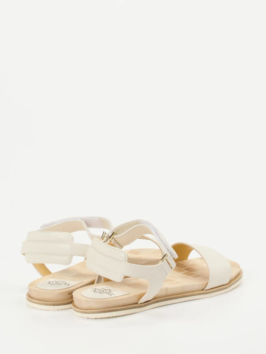 Wertigkeit für entspannte Sommertage.Truman’s präsentiert mit dieser Damen-Klettsandale ein Modell für anspruchsvolle Trägerinnen. Die Kombination aus cremig-beigem Elchleder und strukturierter Holzsohle bietet stilvolle Zurückhaltung mit sensorischer Qualität. Der gepolsterte Fersenriemen, goldfarbene Metallelemente und stabile Klettverschlüsse gewährleisten Alltagstauglichkeit – sei es beim Stadtbummel oder auf Reisen. Die flache, weiße Gummisohle sorgt für sicheren Tritt, während die offenen Riemen sommerliche Leichtigkeit vermitteln. Skandinavisch geprägt, fügt sich das Design nahtlos in natürliche Looks mit Leinen oder hellen Basics. Truman’s steht hier für zurückhaltende Eleganz gepaart mit authentischer Materialqualität.