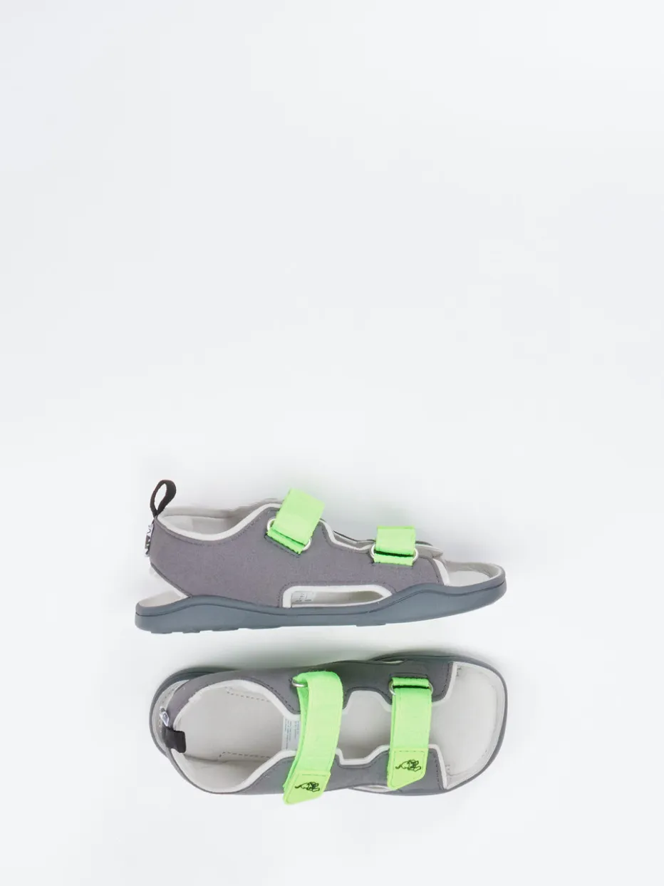 Kindgerecht und funktional für unterwegs.Affenzahn präsentiert eine graue Klettsandale für Kinder mit praktischer Ausstattung. Beim Spielen in der Natur oder auf dem Schulweg bietet die anatomisch geformte Gummisohle sicheren Halt und hohen Tragekomfort. Das recycelte, matte Textilobermaterial sorgt für Robustheit, während das hellgraue Lederfutter weich am Fuß liegt. Neon-grüne Klettverschlüsse mit verspieltem Raubkatzenmotiv, ergonomische Passform und Zuglasche hinten unterstreichen die durchdachte Alltagstauglichkeit. Das Design greift aktuelle Trends wie Neon-Elemente und Utility-Ästhetik auf und passt zu sportiven Sommer-Outfits. Affenzahn kombiniert Funktion, Stil und kindgerechten Komfort in einem durchdachten Gesamtkonzept.