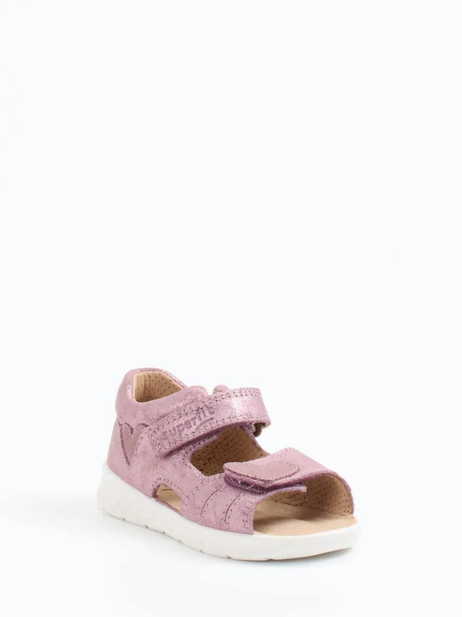 Farbglanz trifft Kindertauglichkeit.Superfit präsentiert mit dieser Klettsandale ein komfortables Modell für Kinderfüße. Ideal für Spielplatz, Urlaub oder Spaziergang – die aus Veloursleder gearbeitete Sandale überzeugt mit samtiger Haptik, schimmerndem Metallic-Finish in Rosa und weichem Lederfutter. Herz-Applikationen und ein geprägtes Markenlogo sorgen für liebevolle Akzente, während die geschlossene Ferse Stabilität bietet. Zwei verstellbare Klettverschlüsse ermöglichen einfaches An- und Ausziehen und sichern optimalen Sitz. Die flexible PU-Sohle mit griffigem Profil ist ideal für Laufanfänger. Ein fröhlicher Sommerbegleiter im Einklang mit aktuellen Metallic-Trends. Superfit vereint kindgerechtes Design mit hochwertiger Verarbeitung für aktive Sommertage.