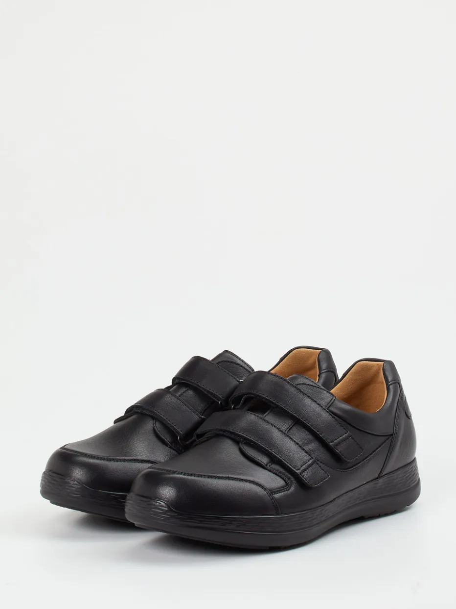 Dieser Herren-Klettschuh vereint ergonomische Passform mit hochwertigem Kalbleder und rutschhemmender Gummisohle – ideal für den komfortorientierten Alltag.