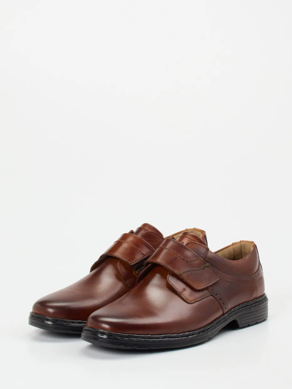 Praktisch-eleganter Komfort für jeden Tag.Josef Seibel präsentiert in der Kategorie Herrenschuhe diesen vielseitigen Klettslipper. Wenn ein komfortstarkes Modell für lange Tage im Büro wie in der Freizeit gefragt ist, bietet dieser Halbschuh besten Mehrwert. Gefertigt aus hochwertigem Kalbleder mit glatter, leicht glänzender Oberfläche zeigt sich das mittelbraune Design klassisch und pflegeleicht. Dezente Ziernähte und ein unauffälliger Klettverschluss unterstreichen die zurückhaltende Formgebung. Die profilierte Gummisohle und der gepolsterte Einstieg sorgen für angenehmes Laufgefühl – auch dank herausnehmbarem Fußbett. Besonders geeignet für den komfortaffinen, klassischen Stiltyp. Josef Seibel steht für durchdachte Bequemlichkeit mit ästhetischer Klarheit.