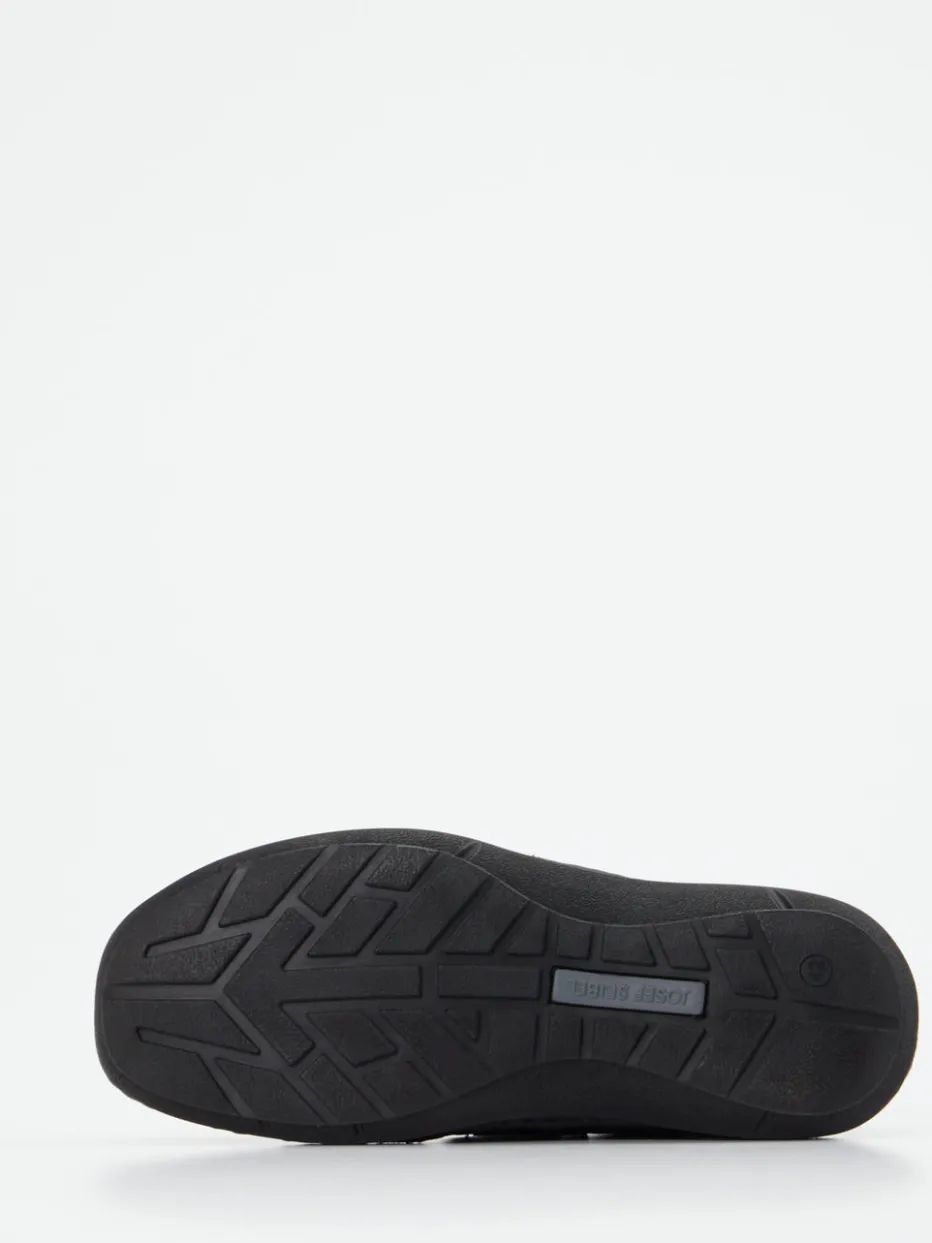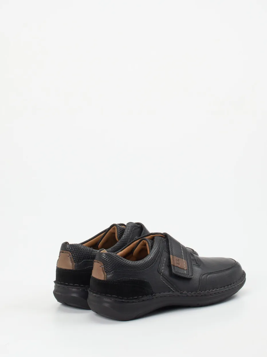 Alltagskomfort mit durchdachtem Design.Josef Seibel präsentiert mit diesem Klettslipper einen bequemen Halbschuh der Herbst/Winter-Kollektion für Herren. Mit dem Fokus auf Komfort bietet der Slipper zuverlässigen Halt und unkomplizierten Einstieg im Alltag. Gefertigt aus hochwertigem Kalbleder mit leicht genarbter Oberfläche in klassischem Schwarz, kombiniert er funktionale Details wie Klettverschluss und gepolsterten Einstieg mit einer rutschhemmenden Gummisohle. Dezente Kontrastnähte und die Logo-Prägung unterstreichen das unaufdringliche Design. Ideal für Freizeit und Zuhause – harmoniert gut mit Komfortjeans oder lässiger Übergangsjacke. Ein pflegeleichter Begleiter mit Markenqualität für komfortbewusste Herren.