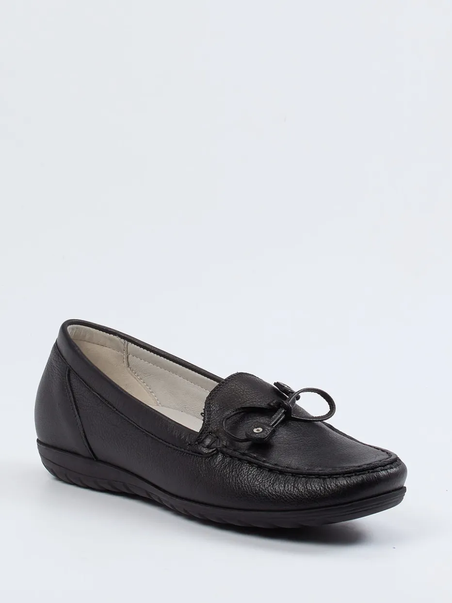 Dieser Komfort-Loafer kombiniert hochwertiges, genarbtes Kalbleder mit weichem Innenfutter und weit geschnittener Passform. Ideal für Alltag und Büro dank rutschhemmender Sohle und Wechselfußbett.