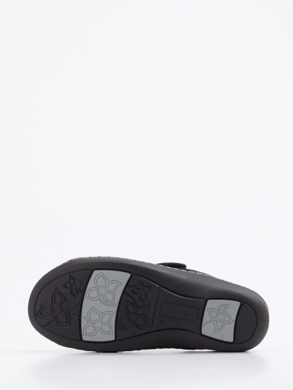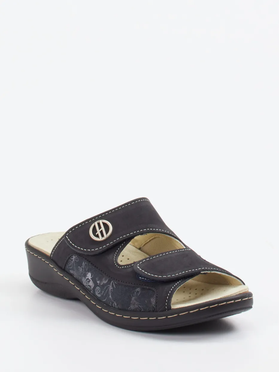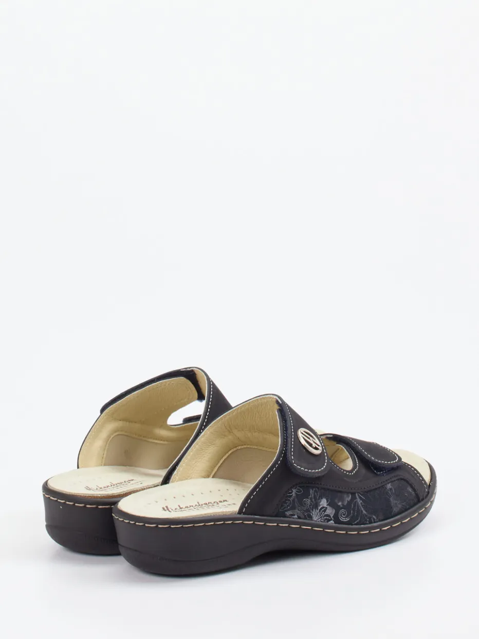 Leichter Sommerkomfort mit funktionalem Anspruch.Hickersberger steht für gesundheitsorientierten Komfort – auch bei dieser Damen-Komfort-Pantolette. Ideal für entspannte Stunden zu Hause oder im Alltag: Das samtig angeschliffene Nubukleder mit Stretchanteil passt sich optimal der Fußform an. Das matte Finish in Anthrazit wird durch florale Prägungen und kontrastierende Ziernähte stilvoll akzentuiert. Zwei verstellbare Klettverschlüsse erlauben individuelle Anpassung, während das weich gepolsterte, lederbezogene Fußbett mit Kräuterextrakten für ein angenehmes Tragegefühl sorgt. Die profilierte PU-Sohle bietet Trittsicherheit und gute Dämpfung. Funktion trifft feminines Design – im typisch bequemen Hickersberger-Stil.