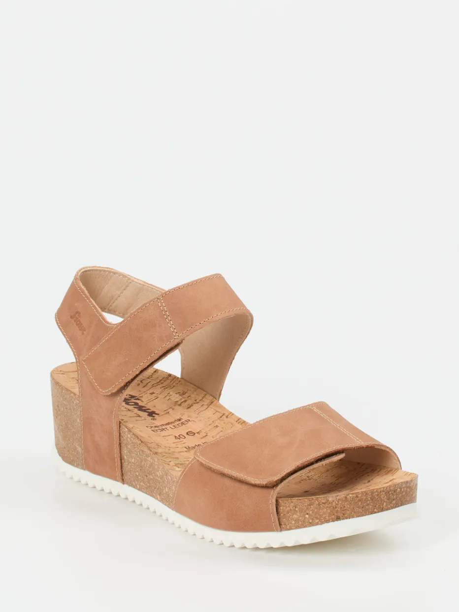 Sommerleicht und natürlich bequem.Die Marke Sioux präsentiert mit dieser Komfort-Sandale ein Modell für entspannte Sommertage. Ob beim Stadtbummel oder auf Reisen – das ergonomisch geformte Kork-Fußbett bietet spürbaren Komfort. Gefertigt aus hellbraunem Kalbleder mit samtiger Velours-Optik punktet das Design durch seine matte Oberfläche und Ton-in-Ton-Nähte. Verstellbare Klettverschlüsse sorgen für einen passgenauen Sitz, die weiße Gummisohle mit Rillenprofil unterstreicht den sportlichen Kontrast. Die offene, weich gerundete Silhouette orientiert sich am Natural-Tones-Trend. Ein Sommermodell, das Komfort und Stil gekonnt verbindet – typisch Sioux.