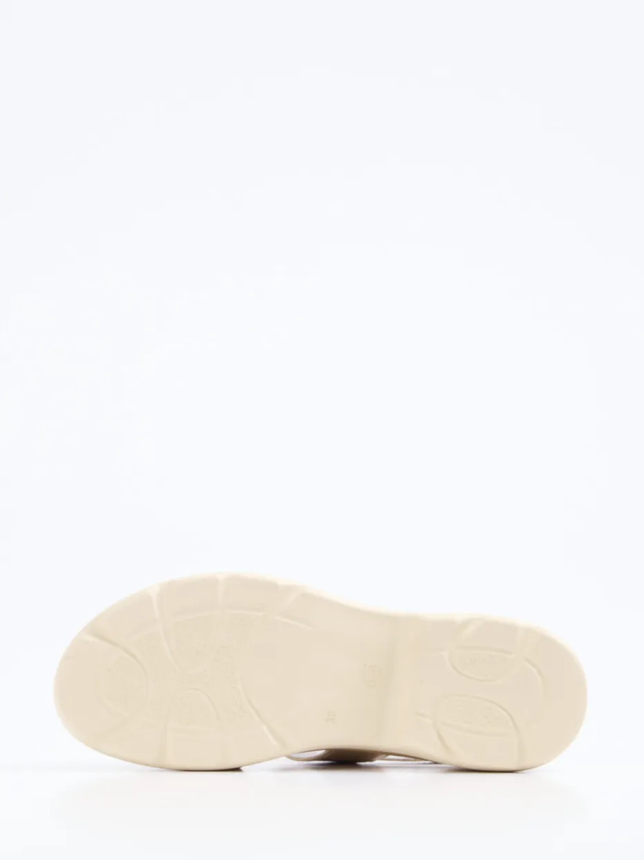 Komfort mit Schimmerwirkung.Die Marke Semler steht bei dieser Damen-Komfortsandale für anspruchsvollen Tragekomfort. Ob beim Stadtbummel oder auf Reisen – das gepolsterte Fußbett und die flexible PU-Sohle sorgen für Leichtigkeit bei jedem Schritt. Das champagnerfarbene Obermaterial aus Metallic-Leder zeigt sich leicht glänzend und unterstreicht die offene Form mit breiten Riemen. Ton-in-Ton-Nähte und ein praktischer Klettverschluss ergänzen das minimalistische Design. Minimal Chic trifft hier auf funktionale Raffinesse im Stil der Soft Metallics SS24. Kombiniert mit Leinenhosen entstehen entspannte Looks. Perfekt ausbalanciert zwischen Ästhetik und Tragefreundlichkeit – typisch Semler.