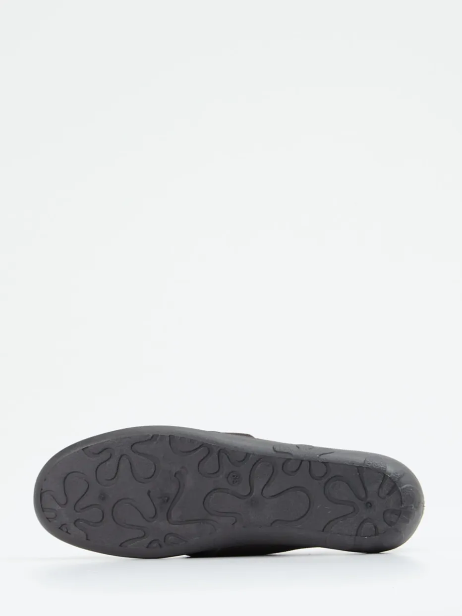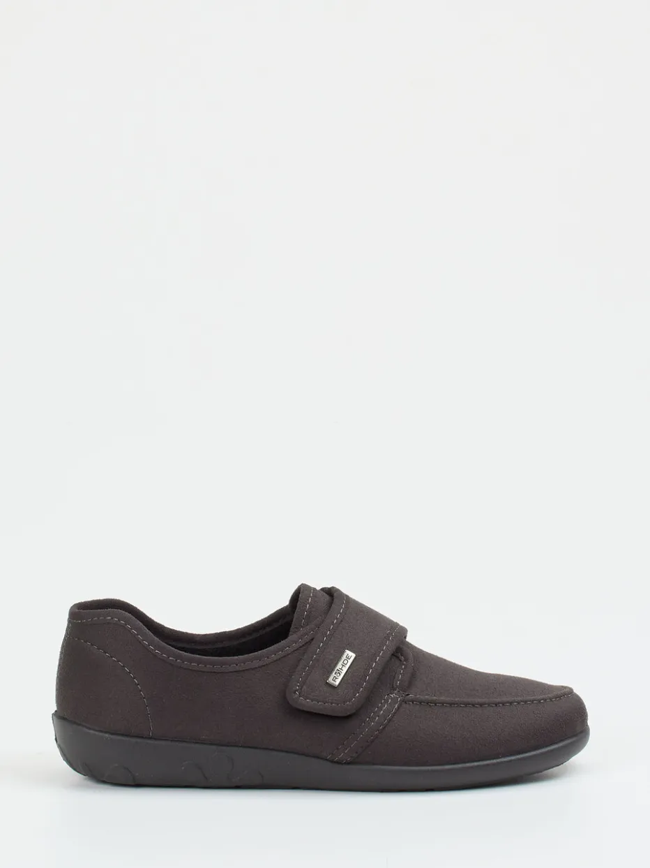 Gemütlichkeit bei jedem Schritt.Die Marke Rohde präsentiert hier einen komfortorientierten Damen-Hausschuh in Slipper-Form. Perfekt für entspannte Tage zu Hause bietet das Modell mit seinem samtartig matten Textilmaterial ein angenehm weiches Tragegefühl. Der dunkelbraune Look wirkt zeitlos dezent, während Details wie Ton-in-Ton-Nähte und eine kleine Metall-Logoapplikation das Erscheinungsbild veredeln. Der Klettverschluss erlaubt eine individuelle Anpassung, ein gepolsterter Einstieg maximiert den Komfort. Die rutschhemmende Gummisohle sorgt dabei für sicheren Halt. Optisch steht der Schuh für minimalistisches Design mit Fokus auf Funktion und Wohlgefühl. Ein Hausschuh, der Komfort und Understatement stilsicher vereint.