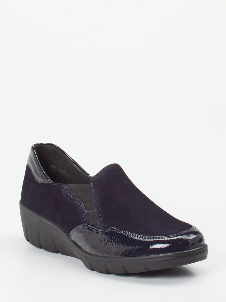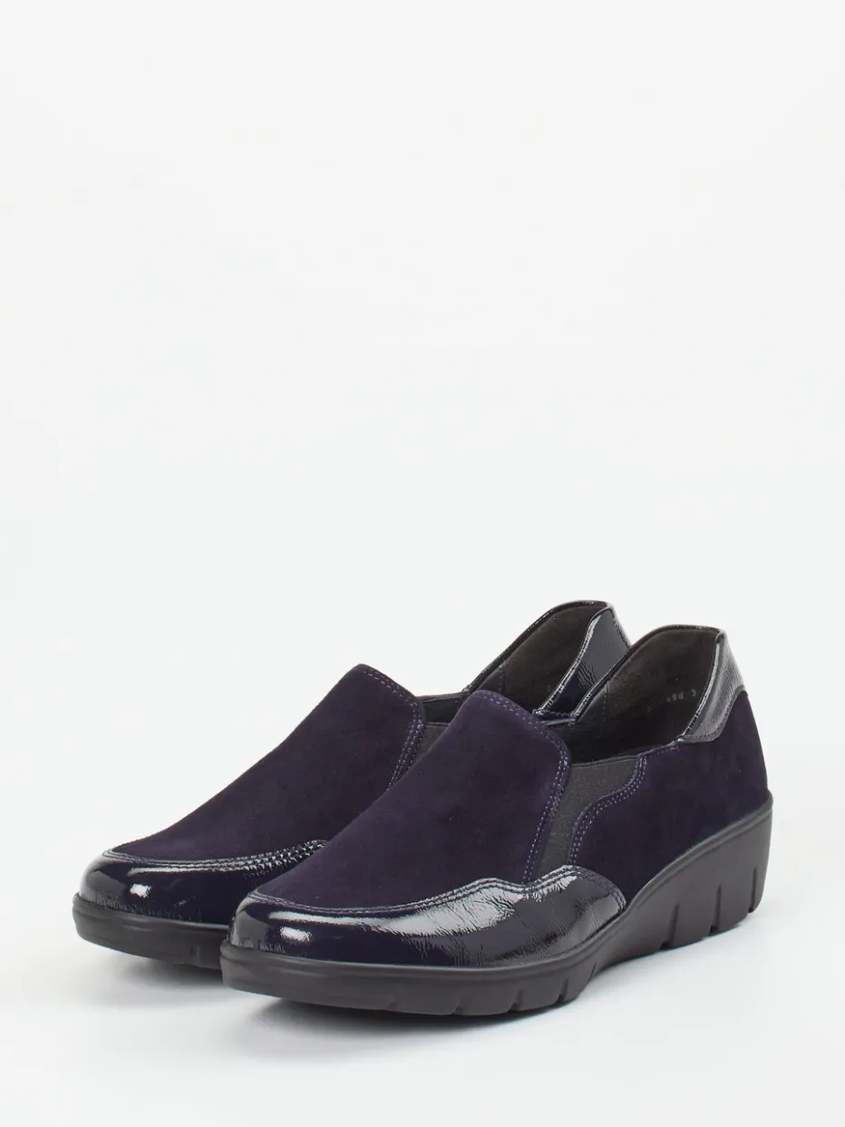 Ein bequemer Slipper in komfortabler Weite H, der mattes Veloursleder mit glänzenden Lacklederakzenten kombiniert – designt für stilvolles Wohlbefinden im Alltag.