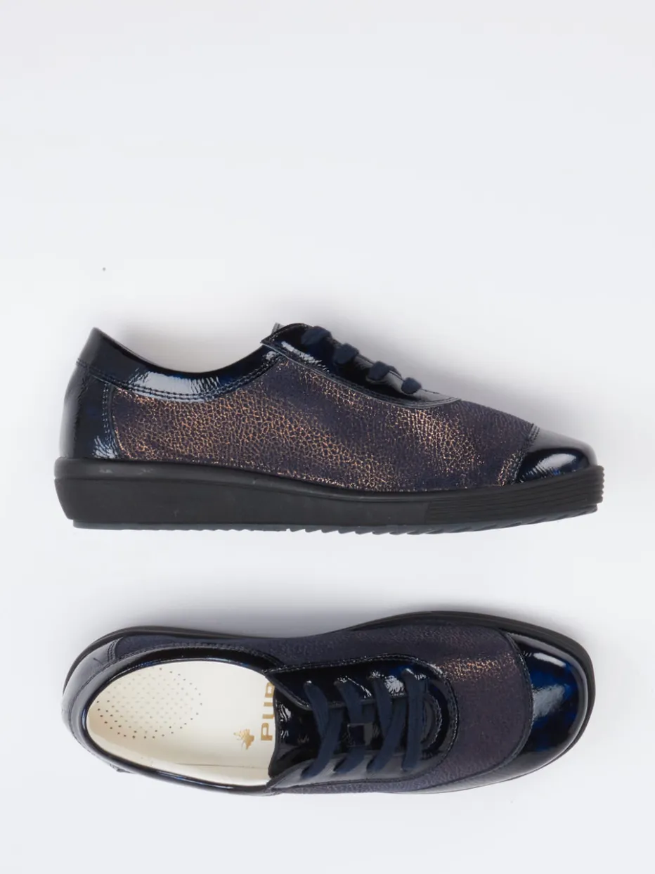 Glänzende Lackdetails treffen auf ergonomischen Tragekomfort – dieser Komfort-Sneaker verbindet stilvolles Design mit alltagstauglicher Funktion und modischem Metallic-Effekt.
