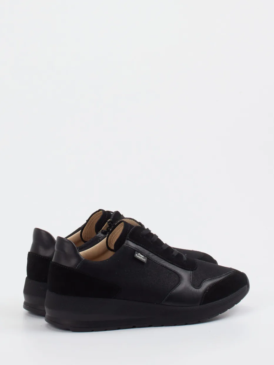 Ob beim Spaziergang durch die Stadt oder bei entspannten Stunden daheim – dieser Sneaker überzeugt mit weichem Leder-/Textilfutter, einer griffig profilierten PU-Sohle und einem attraktiven Mix aus samtigem Veloursleder und glattem Leder. Der seitliche Reißverschluss ergänzt die klassische Schnürung funktional. Schwarzer Ton-in-Ton-Look, gepolsterter Schaftrand und ergonomisches Fußbett unterstreichen die minimalistische Streetwear-Anmutung im Comfort-Core-Trend. Perfekt zu Jogpants oder soften Casual-Outfits.