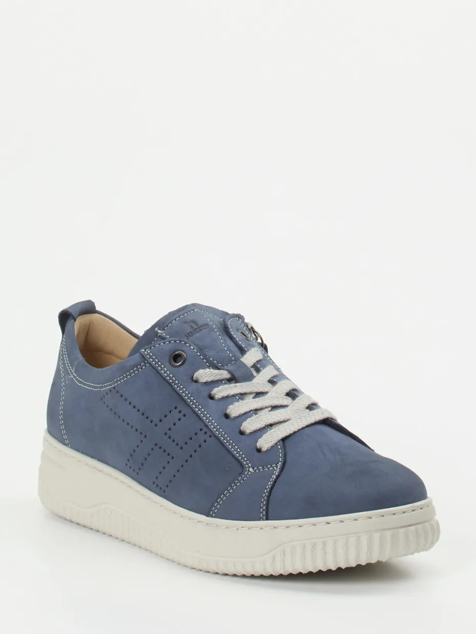 Bequem durch den Alltag.Hartjes steht für entspannte Schuhmode mit Komfortanspruch – genau wie dieser Damen-Komfort-Sneaker. Ob beim Stadtbummel oder im Homeoffice: Das stahlblaue Nubukleder mit matter Oberfläche und hellgrauen Kontrastnähten wirkt modern und zurückhaltend. Die Kombination aus Schnürung und seitlichem Reißverschluss ermöglicht komfortables Anziehen, die weich gepolsterte Einlegesohle unterstützt bei jedem Schritt. Die profilierte Offwhite-Gummisohle bietet dabei sicheren Halt und unterstreicht den sportlich-minimalistischen Look. Ideal zu Stretch-Jeans oder Softshelljacke kombinierbar. Komfortable Weite H und Leichtbauweise machen ihn zum smarten Begleiter für aktive Tage.