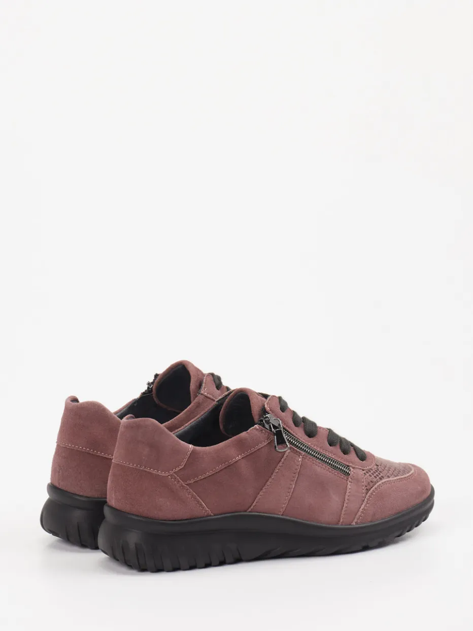 Struktur trifft Komfort in eleganter Form. Semler präsentiert mit diesem Damen-Komfort-Sneaker einen stilvollen Alltagsbegleiter. Ideal für entspannte Freizeitaktivitäten bietet der Sneaker dank Stretch-Obermaterial ein flexibles Tragegefühl. Die Kombination aus mattem Velourslook und einer akzentuierenden Schlangenprägung im Vorderfuß setzt moderne Akzente in Altrosa, abgerundet durch schwarze Elemente und einen glänzenden Reißverschluss. Der seitliche Zipper ergänzt die Schnürung funktional und erleichtert den Einstieg. Mit PU-Sohle, Weite H und gepolstertem Schaftrand ausgeführt, eignet sich das Modell besonders für komfortaffine Trägerinnen. Die strukturierte Optik folgt dem Trend „Textur-Mix AW24“. Harmoniert besonders gut mit schlichten Casual-Looks. Semler verbindet progressiven Textur-Stil mit komfortabler Passform für abwechslungsreiche Alltagssituationen.