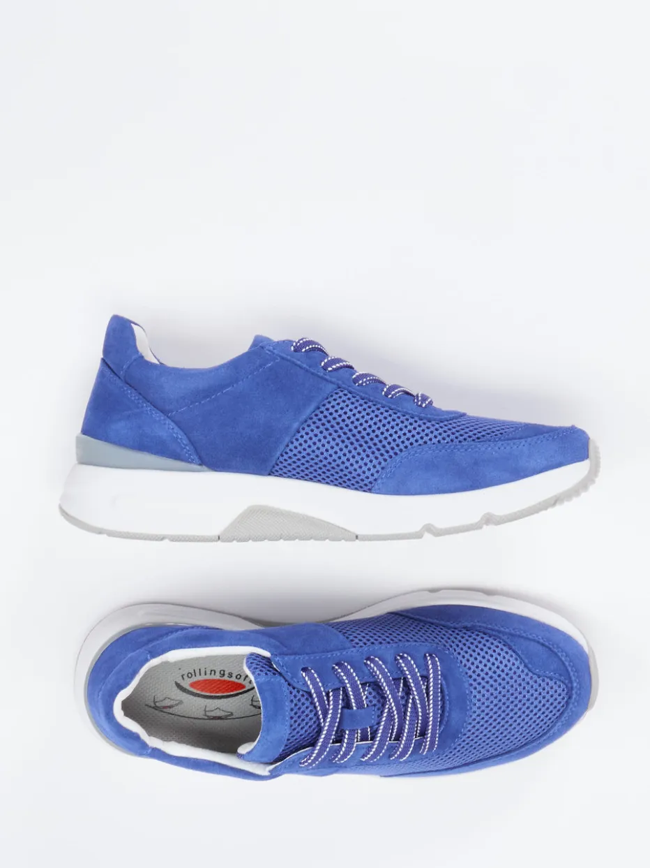 Sportiver Komfort in kühlem Blau.Gabor Comfort zeigt mit diesem Komfort-Sneaker einen stilvollen Alltagsbegleiter mit durchdachter Ausstattung. Ideal für Tage mit viel Bewegung: Die Kombination aus weichem Veloursleder und luftdurchlässigem Mesh macht den Schuh atmungsaktiv und anschmiegsam. Das intensive Kobaltblau wird durch hellgraue Akzente und reflektierende Schnürsenkel modern inszeniert. Die sportlich-breite Form mit gepolstertem Schaftrand und profilierter Gummisohle unterstützt eine entspannte Passform. Funktionale Details wie das wechselbare Fußbett und eine effektive Fersendämpfung machen ihn besonders komfortabel. Lässt sich mühelos zu Jeans und Funktionsjacke kombinieren. Ein stilbewusster Bewegungspartner mit ergonomischem Anspruch.