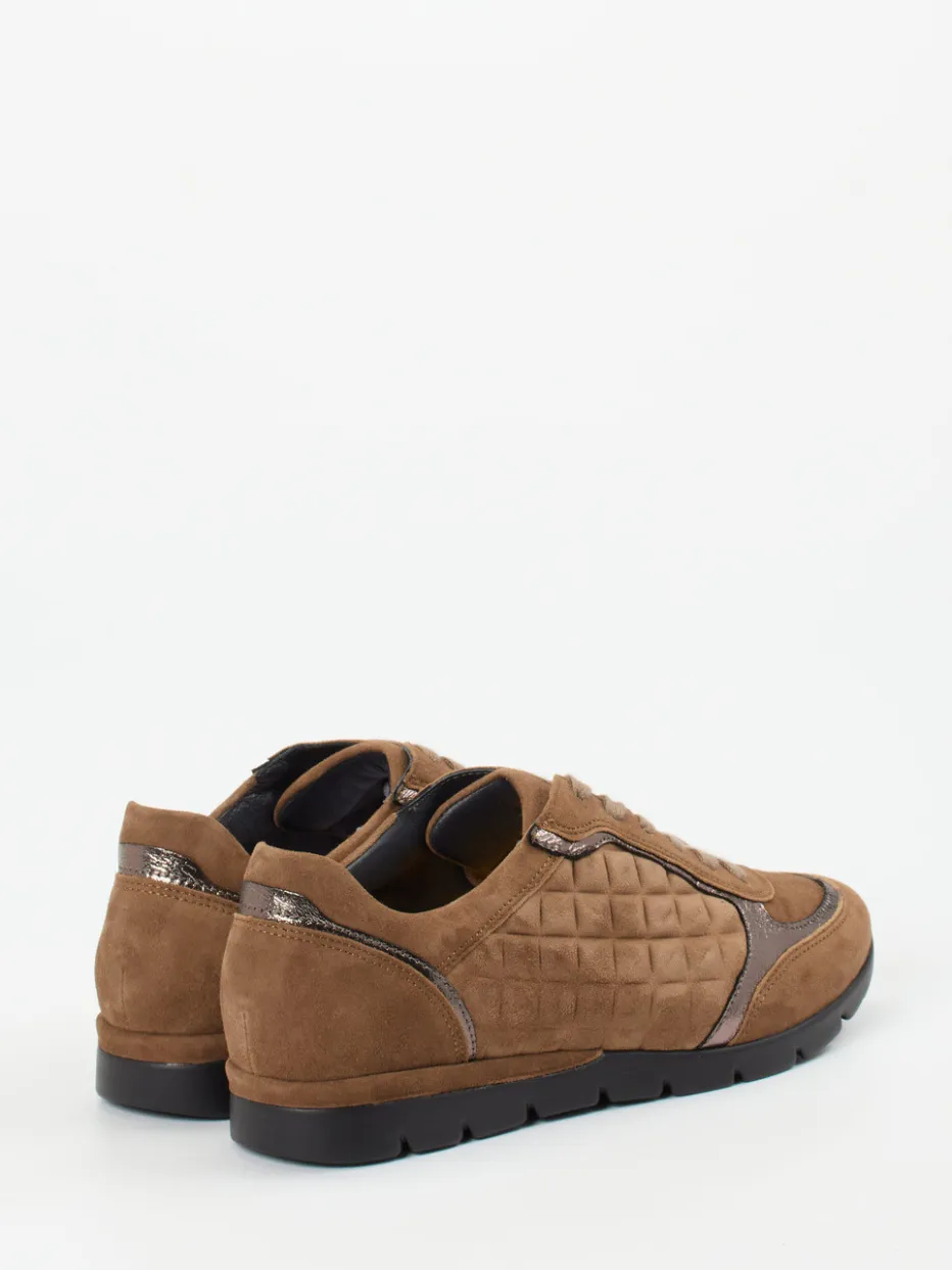 Viel Komfort, dezentes Funkeln.Der Komfort-Sneaker von Semler verbindet Funktion und Design auf elegante Weise. Ideal für entspannte Alltagsmomente und längere Spaziergänge überzeugt das Modell durch hochwertiges Veloursleder in warmem Cognacbraun. Steppdetails in tonigem Nappaleder und fein eingearbeitete Metallic-Akzente in Bronzeoptik setzen stilvolle Kontraste. Die klassische Sneakerform mit Schnürung ergänzt sich mit einer gut profilierten PU-Sohle und einem weich gepolsterten Schaftrand für optimalen Halt. Die bequeme Weite H und das herausnehmbare Fußbett unterstreichen den funktionalen Anspruch, während sich das Design mühelos in Casuallooks einfügt. Semler steht für durchdachten Komfort mit dezentem Trendbewusstsein.