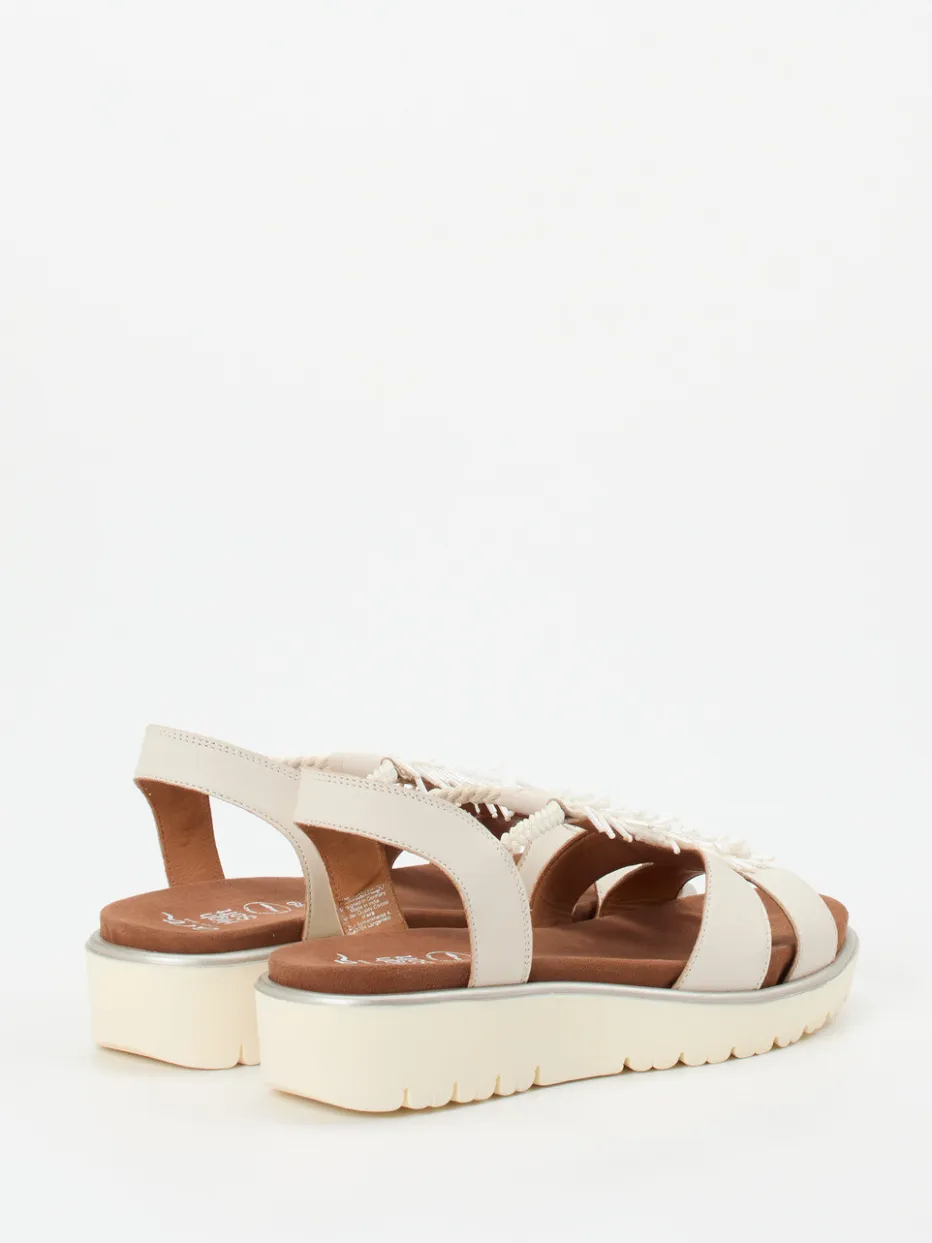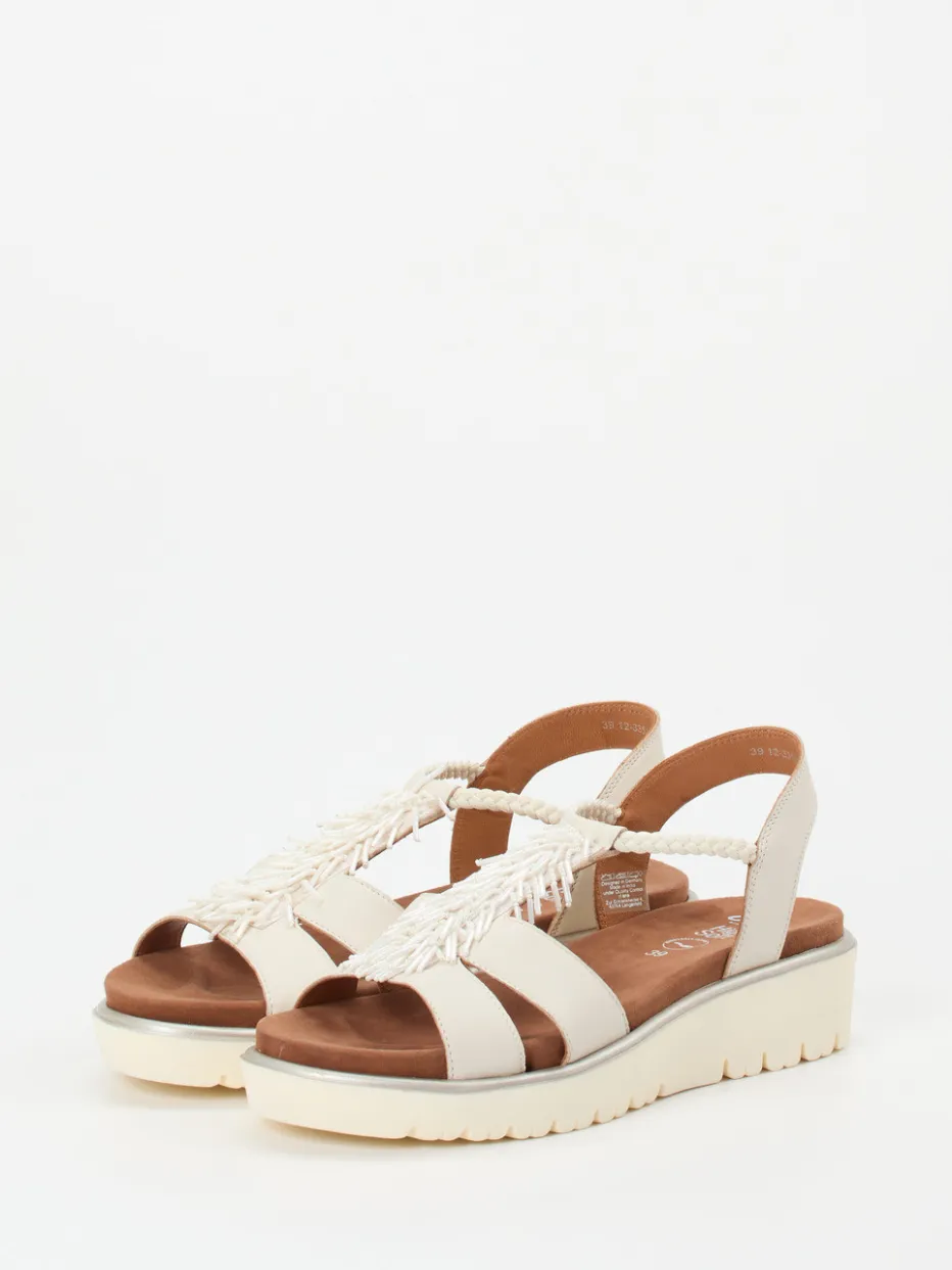 Stilvoller Komfort an warmen Tagen.Ara präsentiert mit dieser Sandale ein bequemes Freizeitmodell in der Kategorie Komfortsandalen. Für entspannte Stadtspaziergänge oder Urlaubsausflüge konzipiert, kombiniert sie geprägtes Leder mit matter Oberfläche und bietet durch das ergonomisch geformte Fußbett mit High Soft-Innensohle angenehmen Tragekomfort. Das cremeweiße Obermaterial erhält durch ein Pünktchenmuster und geflochtene Riemendetails mit Fransen verspielte Akzente, während der silberfarbene Sohlenrand und die leichte Profilsohle modische Leichtigkeit einbringen. Der elastische Fersenriemen und die G-Weite sorgen für optimale Passform bei hohem Tragekomfort. Das Design ist vom Boho-Stil und sanften Naturtönen inspiriert. Luftig-leicht und durchdacht bequem – ein charaktersicherer Begleiter aus dem Bequemsortiment von Ara.