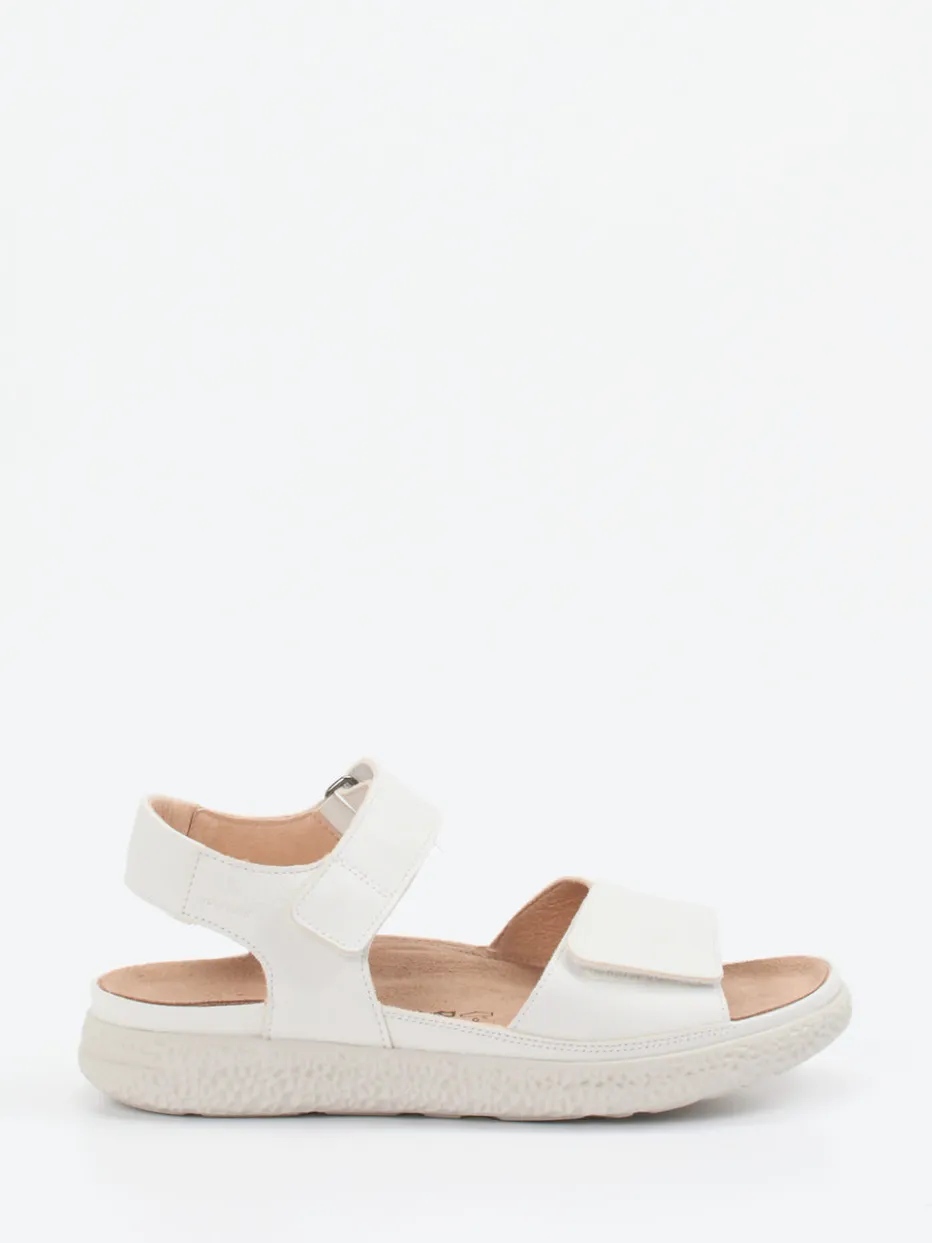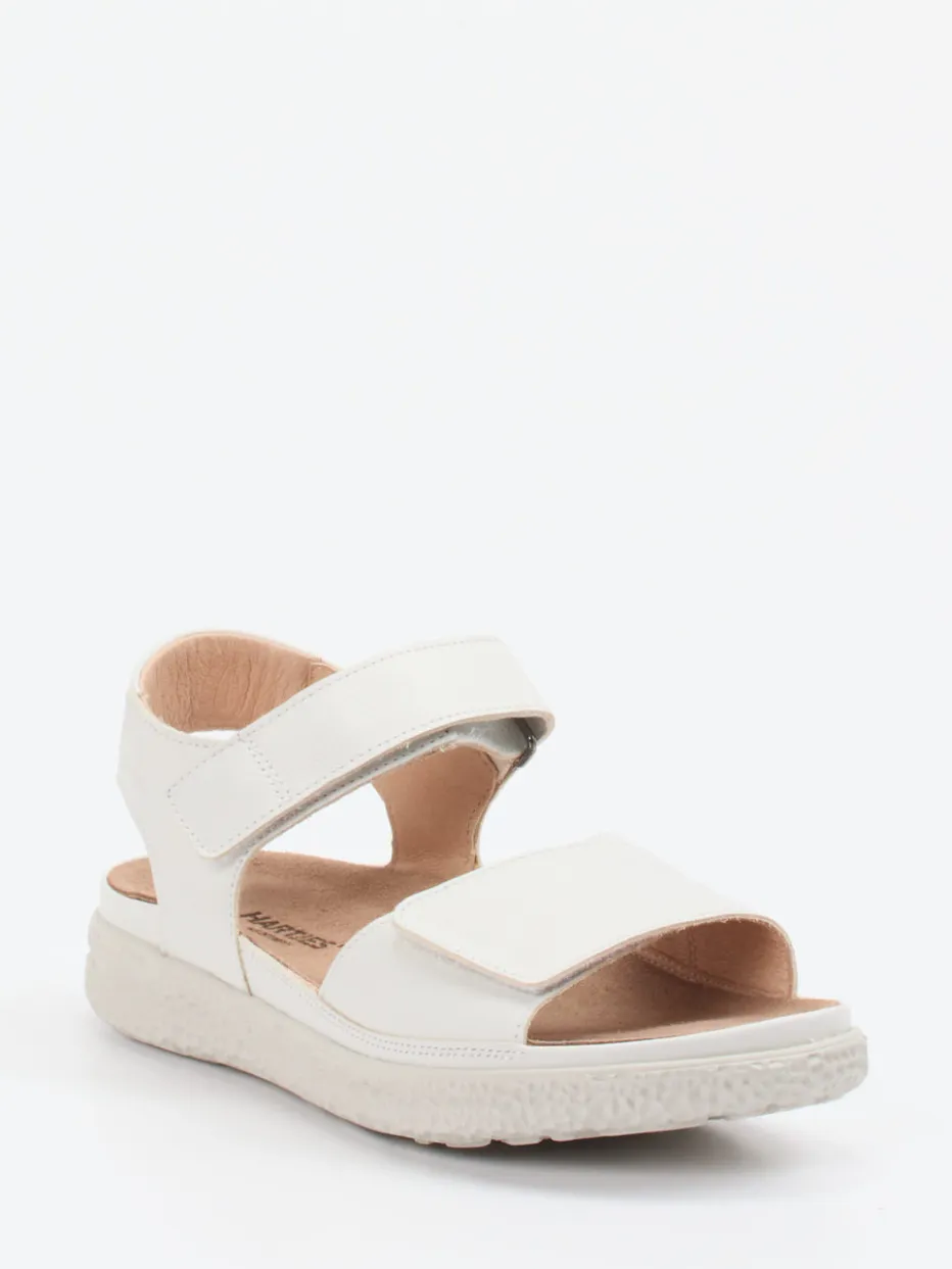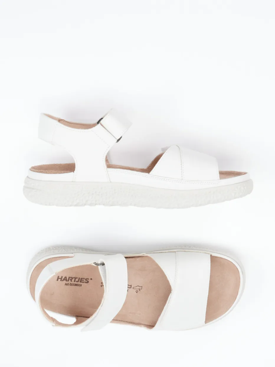 Reduzierter Look, maximaler Tragekomfort.Hartjes präsentiert eine Damen-Komfortsandale, die durch Qualität und Bequemlichkeit überzeugt. Ob für Spaziergänge bei warmem Wetter oder entspannte Stunden im Alltag – das weiße Kalbleder mit matter Oberfläche liegt angenehm auf der Haut. Das ergonomische Fußbett aus bezogener Korksohle lässt sich austauschen und sorgt zusammen mit den gepolsterten Klettriemen für optimale Anpassung. Ton-in-Ton-Nähte, strukturierte Laufsohle und ein dezent-minimalistisches Design unterstreichen den modernen Quiet-Luxury-Look. Perfekt zu Leinenhosen oder Sommerblusen kombinierbar. Markentypischer Komfort mit zeitloser Funktion und Stil.