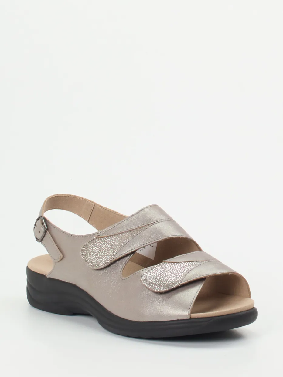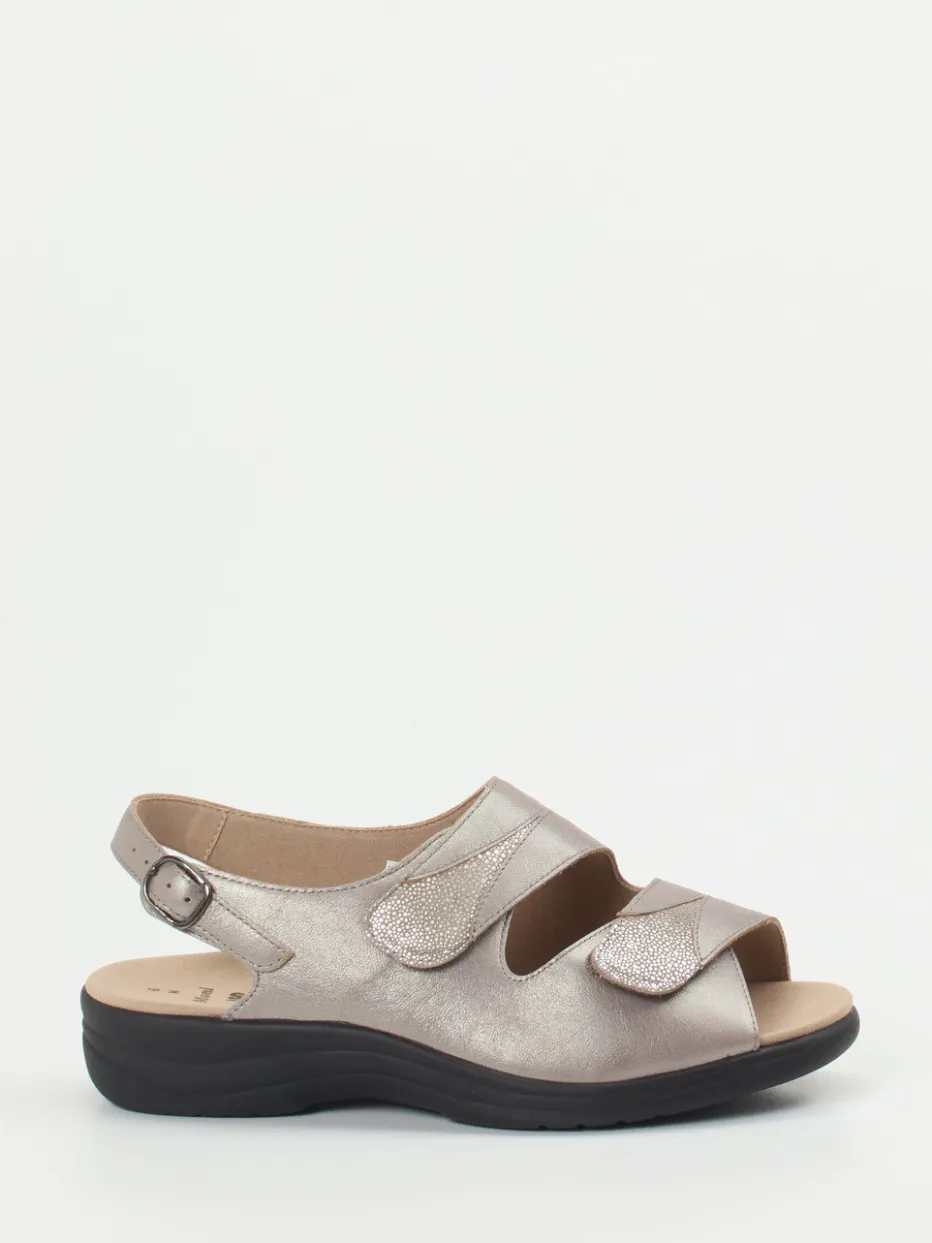 Diese leicht glänzende Komfortsandale von Solidus verbindet ergonomisches Design mit eleganten Metallic-Details – perfekt für entspannte Sommertage.