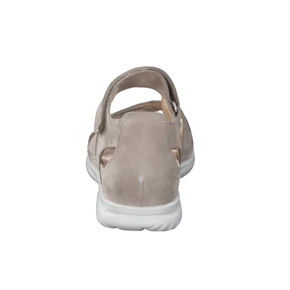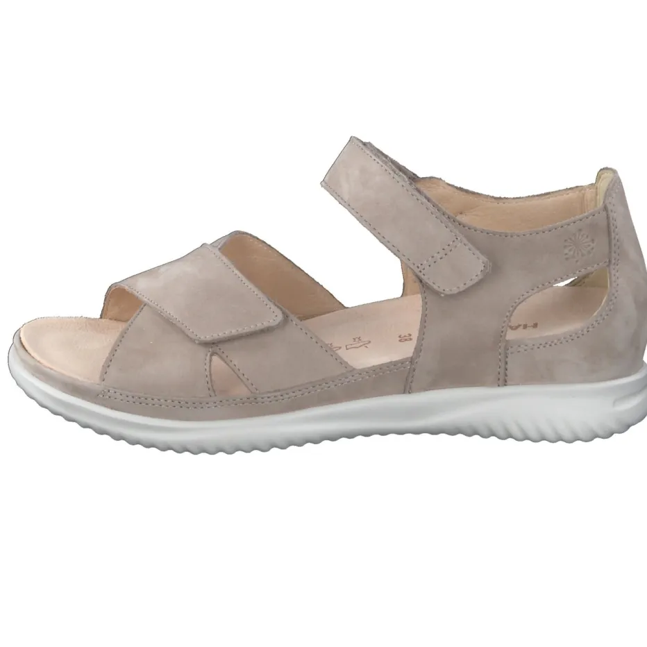 Minimale Form, maximaler Komfort.Die Marke Hartjes präsentiert mit dieser Komfortsandale ein alltagsstarkes Damenmodell für warme Tage. Ob beim Stadtbummel oder beim Relaxen im Garten: Das samtig angeschliffene Nubukleder in elegantem Beigegrau und die ergonomisch geformte Silhouette sorgen für ein natürliches Tragegefühl. Tonige Nähte, die weich gepolsterte Fersenpartie sowie individuell verstellbare Klettverschlüsse bieten funktionale Details mit Stil. Das lederbezogene Fußbett ist herausnehmbar – ideal bei Bedarf nach eigenen Einlagen. Die flexible, profilierte Gummisohle sorgt für sicheren Stand. Ein vielseitiger Alltagsbegleiter im Zeichen kompromisslosen Komforts von Hartjes.