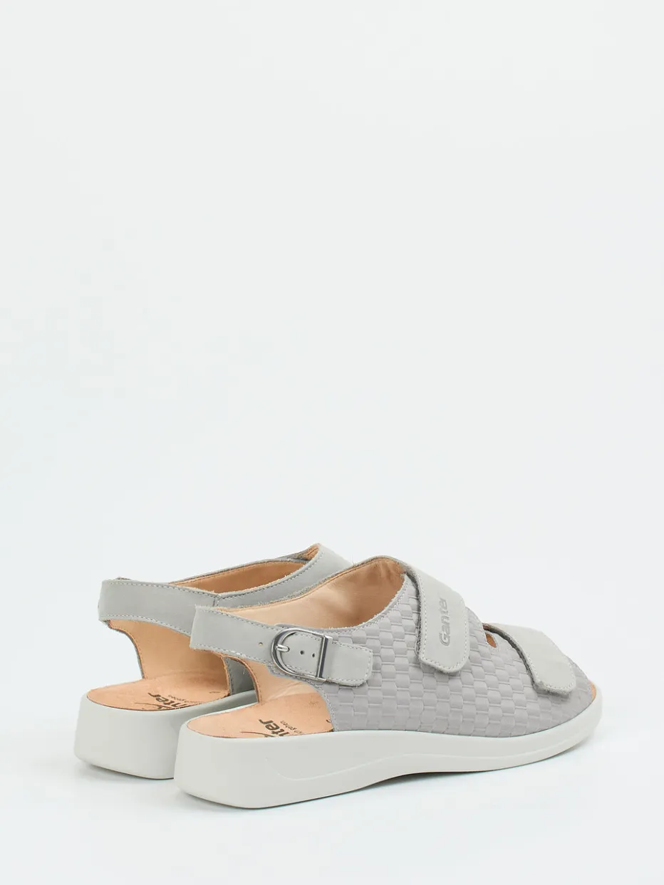 Geht auf entspannte Weise mit.Die Marke Ganter präsentiert hier eine Komfortsandale für Damen. Ob für den Alltag, gemütliche Stadtbummel oder entspannte Stunden zu Hause – dieses Modell überzeugt durch hochwertiges Nubukleder mit samtiger Velours-Textur. Die hellgraue Flechtoptik wirkt dezent modern, während zwei praktische Klettverschlüsse und der verstellbare Fersenriemen mit silberfarbener Schließe individuellen Halt geben. Das ergonomisch geformte, lederbezogene Fußbett sorgt gemeinsam mit der stoßdämpfenden Gummisohle für angenehmen Gehkomfort. Stilistisch ist dieser Bequemschuh dem Trend „Functional Comfort“ zuzuordnen und passt ideal zu relaxtem Freizeitstil in Naturtönen oder Denim. Ein Ganter-typischer Schuh für sensibles, doch stilvolles Gehen.