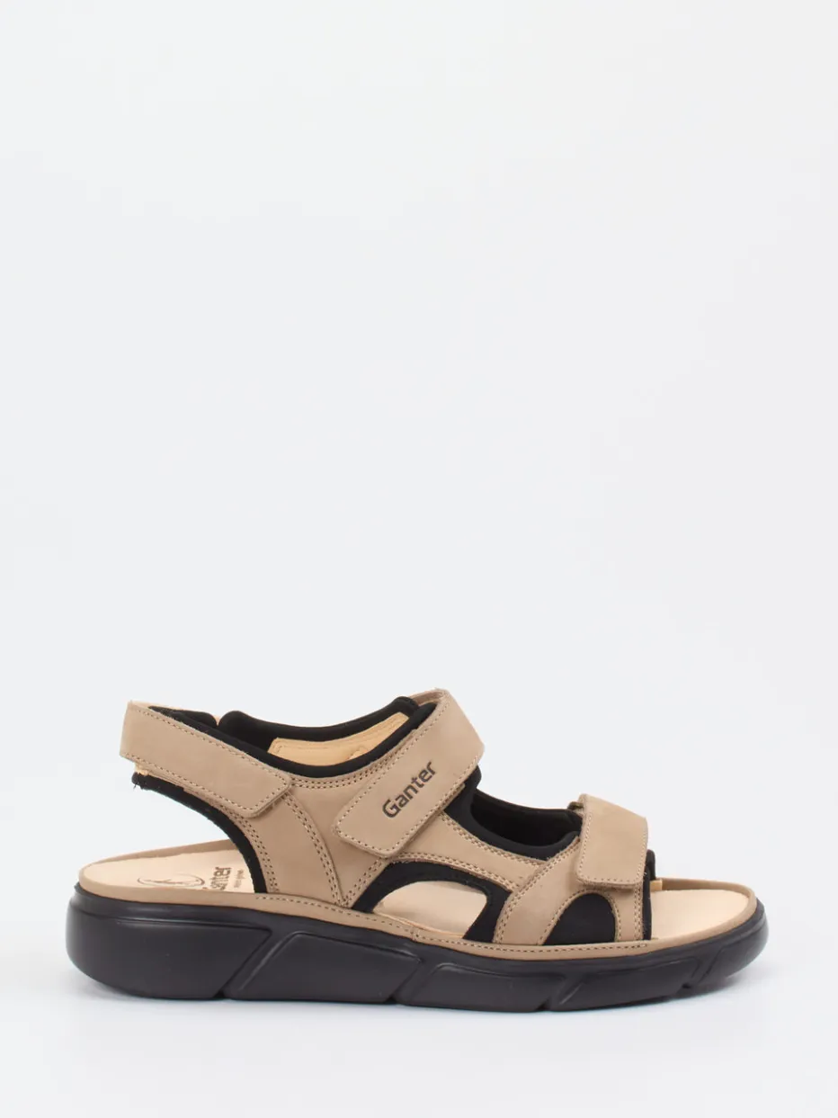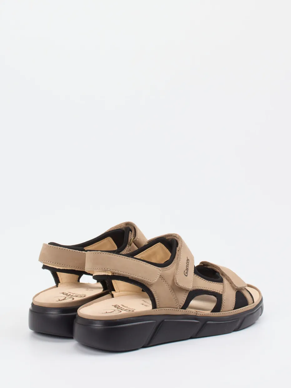 Diese Ganter-Sandale vereint hochwertiges Nubukleder mit ergonomischem Komfort. Drei Klettverschlüsse und ein austauschbares Kork-Fußbett sorgen für individuellen Halt.