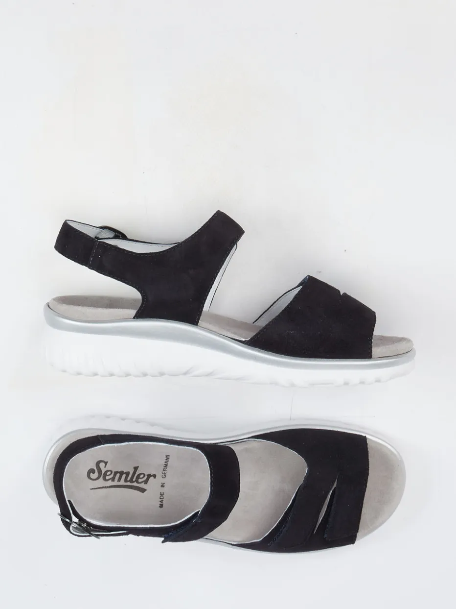 Diese Komfortsandale von Semler verbindet ergonomisches Design mit hochwertigem Veloursleder. Ideal für entspannte Sommertage mit maximalem Tragekomfort.