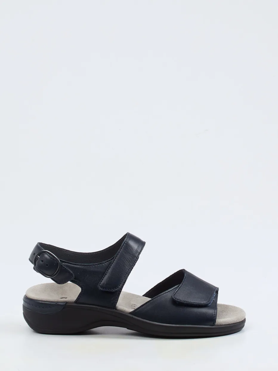 Ideal für längere Ausflüge oder gemütliche Stunden zuhause: Das Modell aus dunkelblauem Kalbleder kombiniert samtmatte Optik mit cleverem Komfort. Das wechselbare, ergonomisch gepolsterte Fußbett ist mit Veloursleder bezogen und eignet sich auch für eigene Einlagen. Zwei Klettverschlüsse und ein verstellbarer Fersenriemen mit Druckknopf ermöglichen individuelle Anpassung. Die flexible PU-Sohle mit Luftpolsterung sorgt für sicheren Halt. Minimalistische Formgebung und Ton-in-Ton-Nähte unterstreichen den funktionalen Charme. Lässt sich perfekt zu legeren Sommer-Looks kombinieren.