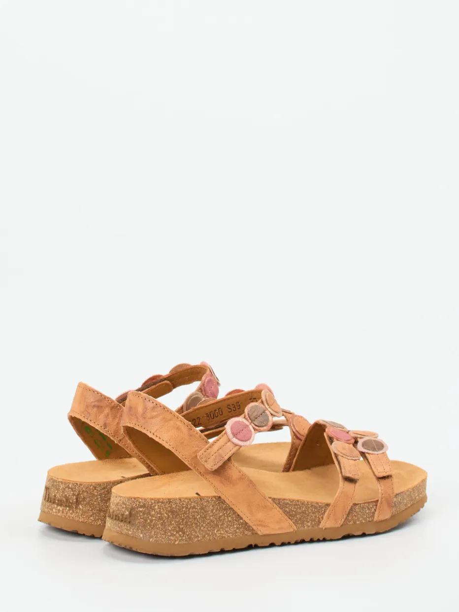 Stilvoll durch den Sommer.Die Marke Think präsentiert Komfortsandalen für Damen mit einem Fokus auf Tragequalität und Materialästhetik. Diese Sandale überzeugt durch weich strukturiertes Veloursleder in Hellbraun, ergänzt durch farbige Leder-Zierkreise mit irisierendem Finish. Drei verstellbare Klettverschlüsse sorgen für passgenauen Halt, das anatomisch geformte Fußbett aus Naturkork bietet langanhaltenden Komfort. Die offene Silhouette und die rutschhemmende Sohle unterstreichen die Alltagstauglichkeit dieser Boho-inspirierten Sandale. Perfekt zu Leinenmode oder lässigen Sommerkleidern. Think vereint intelligenten Komfort mit nachhaltiger Leichtigkeit.