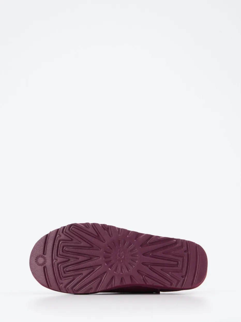 Wohlgefühl in Beerenrot.UGG präsentiert einen geschlossenen Hausschuh für Damen, der Wärme, Stil und Komfort souverän vereint. An kühlen Tagen begeistert das Modell durch sein weiches Innenfutter aus Lammfellnappa und ein Obermaterial aus mattem Veloursleder. Der klassische Schlupfschuh in sattem Beerenrot zeigt sich mit runder Silhouette, sichtbarer Fellkante und dezenter Zuglasche. Das durchgängige Design mit profilierter Gummisohle verleiht ihm Griffigkeit – ideal auch für kurze Wege nach draußen. Im „Quiet Luxury“-Stil unterstreicht er moderne Cocooning-Looks. Ein Hausschuh mit Funktion und Ästhetik – UGG-Komfort für stilvolle Ruhephasen.
