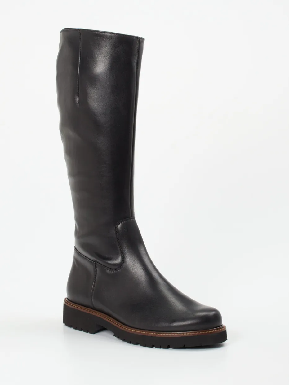 Winterklassiker in minimalistischem Design.Semler präsentiert einen komfortablen Langschaftstiefel für Damen aus geschmeidigem Kalbleder. Ideal für den urbanen Alltag bei Herbst- und Winterwetter: Das schwarze, glänzende Kalbleder mit kontrastierender Rahmennaht sorgt für einen reduzierten Look mit Eleganz. Der innenliegende Reißverschluss erleichtert das Anziehen, während die stark profilierte Gummisohle Trittsicherheit garantiert. Die gerade Schaftform mit Weite H sowie das weiche Textilfutter bieten hohen Komfort. Die klare Linienführung und dezente Details fügen sich geschmackvoll in den Quiet-Luxury-Trend ein. Kombiniert mit Wollmantel und Lederhandtasche entsteht ein stimmiger Auftritt. Hochwertige Verarbeitung und funktionale Ästhetik für stilbewusste Alltagssituationen.