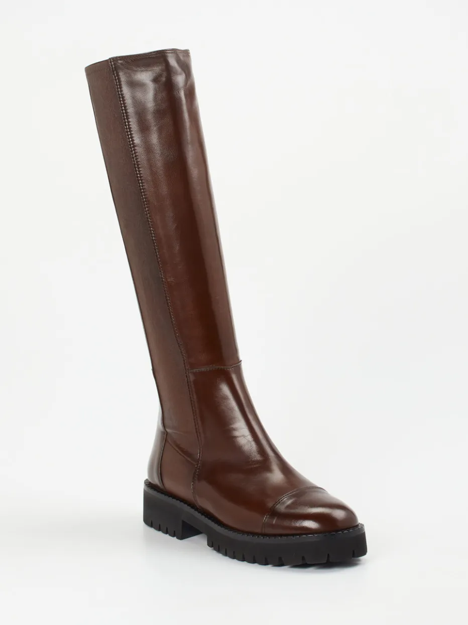 Dieser Langschaftstiefel verbindet fein glänzendes Lammleder mit einer modernen Profilsohle – ein eleganter Hybrid aus Reitstil und urbaner Ästhetik.