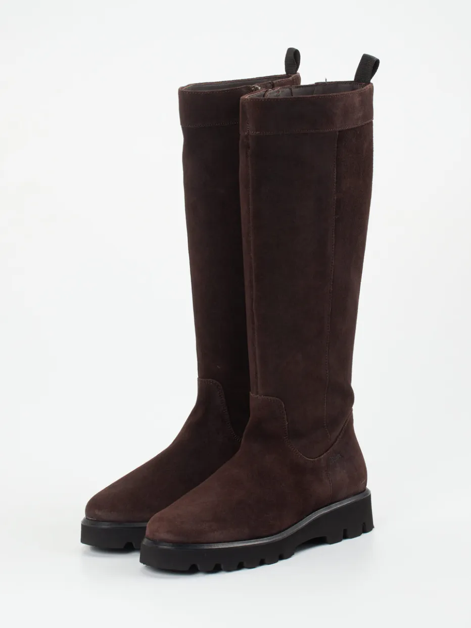 Komfort trifft klare Silhouette.Die Marke Sioux präsentiert einen Damen-Langschaftstiefel aus weichem Veloursleder in Dunkelbraun. Ideal für herbstliche Wege durch Stadt und Natur überzeugt das Modell mit seiner robusten Gummisohle, dem geraden Schaft und klarem Quiet-Luxury-Stil. Das samtig angeschliffene Obermaterial wird durch einen seitlichen Reißverschluss und eine schwarze Zuglasche mit Markenprint funktional ergänzt. Innen sorgt feines Microfaser-Futter sowie ein bequemes Wechselfußbett (Weite H) für angenehmes Tragegefühl. Der Look passt sowohl zu Strickkleid als auch Steppmantel. Sioux steht für hochwertigen Komfort mit funktionaler Eleganz.