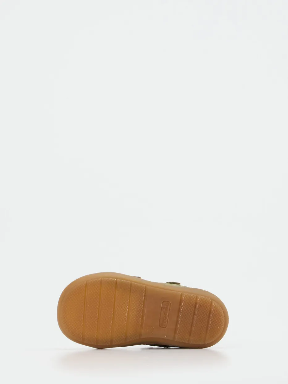 Bequem starten – stilvoll gehen.Die Marke Froddo präsentiert kindgerechte Lauflernsandalen aus geschmeidigem Kalbleder in Olivgrün. Ideal für erste Entdeckungstouren: Das weiche, matt strukturierte Leder in natürlichem Olivgrün sorgt zusammen mit atmungsaktiven Cut-Outs und einer geschlossenen Ferse für sicheren Halt. Ton-in-Ton-Nähte, ein geprägtes Riemen-Logo sowie Klettverschlüsse unterstreichen den funktionalen Minimalismus. Die honigfarbene Gummisohle ist rutschfest und flexibel – optimal für Laufanfänger. Skandinavisch inspiriert, passt die Sandale in moderne Alltagslooks. Durchdachtes Design für komfortables Barfußgefühl – mit stilistischer Zurückhaltung von Froddo.