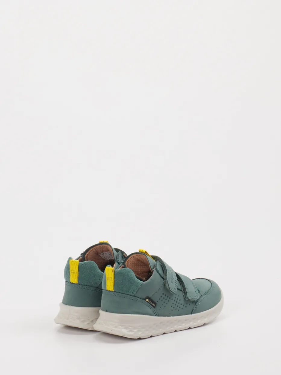 Ideal für kleine Entdecker. Superfit präsentiert mit diesen Lauflernschuhen ein durchdachtes Modell für Kinderfüße. Ob auf dem Spielplatz oder unterwegs im Alltag – der Schuh hält dank atmungsaktivem Leder mit matter Oberfläche und Gore-Tex-Ausstattung Wind und Wetter stand. Das petrolgrüne Design wird durch gelbe Details und weiße Sohlenpartien lebendig ergänzt. Die runde Silhouette mit kontrastierender Zuglasche und doppeltem Klettverschluss erleichtert das An- und Ausziehen. Das Laufprofil sorgt für Halt, ohne an Flexibilität einzubüßen. Trendaffin zeigt sich das Modell mit Anleihen an den Gorpcore- und Color-Blocking-Look der Saison. Funktionalität trifft stylishe Farbgebung – ein echtes Superfit-Highlight für aktive Kids.