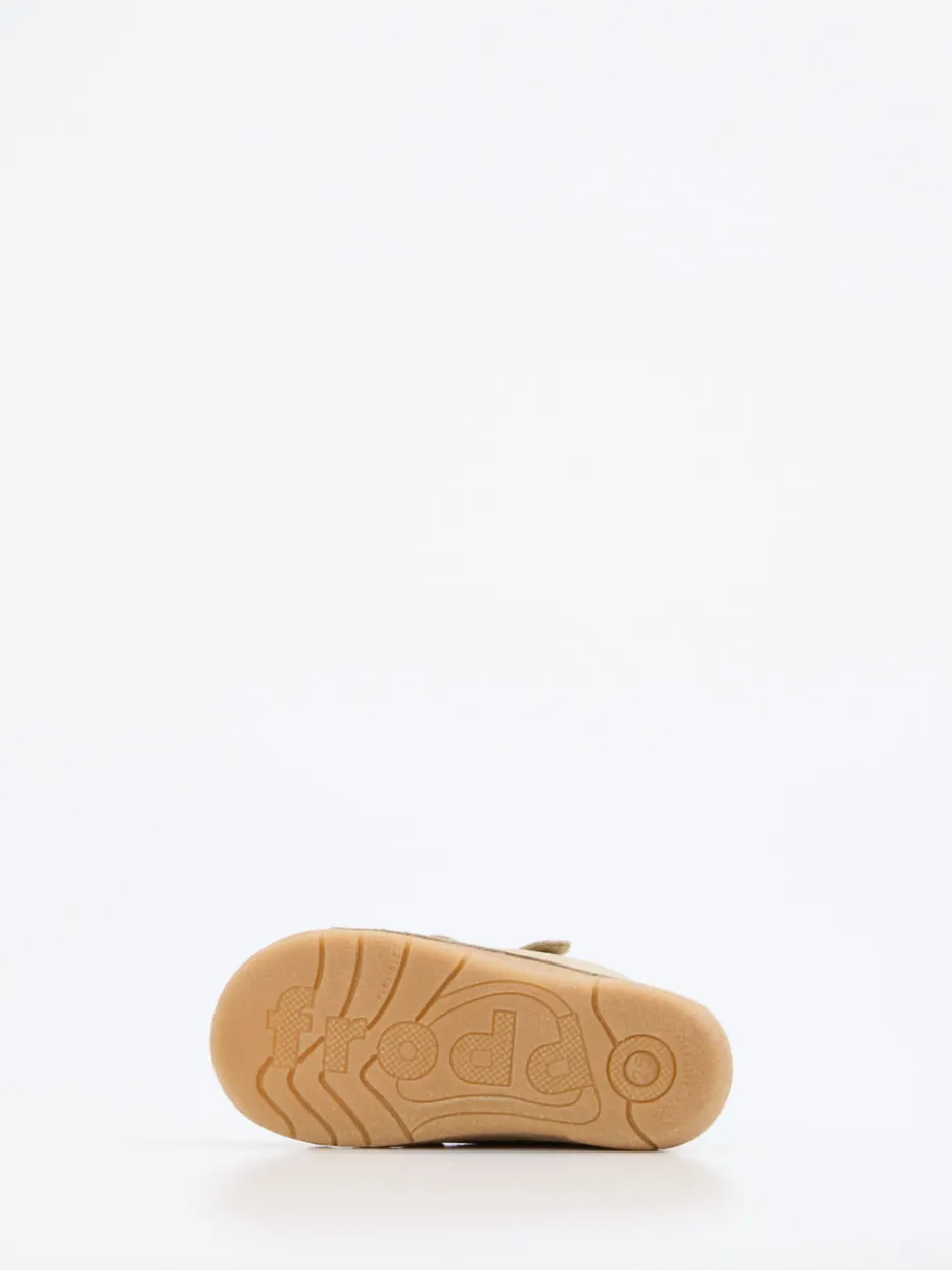Leicht zu tragen, sicher beim Gehen.Froddo präsentiert mit diesem knöchelhohen Modell hochwertige Lauflernschuhe für Kinder. Perfekt für erste Schritte auf glatten Böden oder draußen im Alltag unterstützt das Design mit rutschfester Gummisohle und verstärktem Zehenbereich den sicheren Stand. Das metallic-goldene Leder überzeugt mit dezentem Glanz und einer leicht glänzenden Oberfläche. Praktischer Klettverschluss erleichtert das An- und Ausziehen, während Ton-in-Ton-Nähte und die Schlichtheit skandinavischer Kindermode stilprägend wirken. Passt ideal zu sanften Farbwelten mit Krabbelhose oder Jersey-Body. Überzeugt durch ergonomische Passform und liebevolle Materialwahl von Froddo.