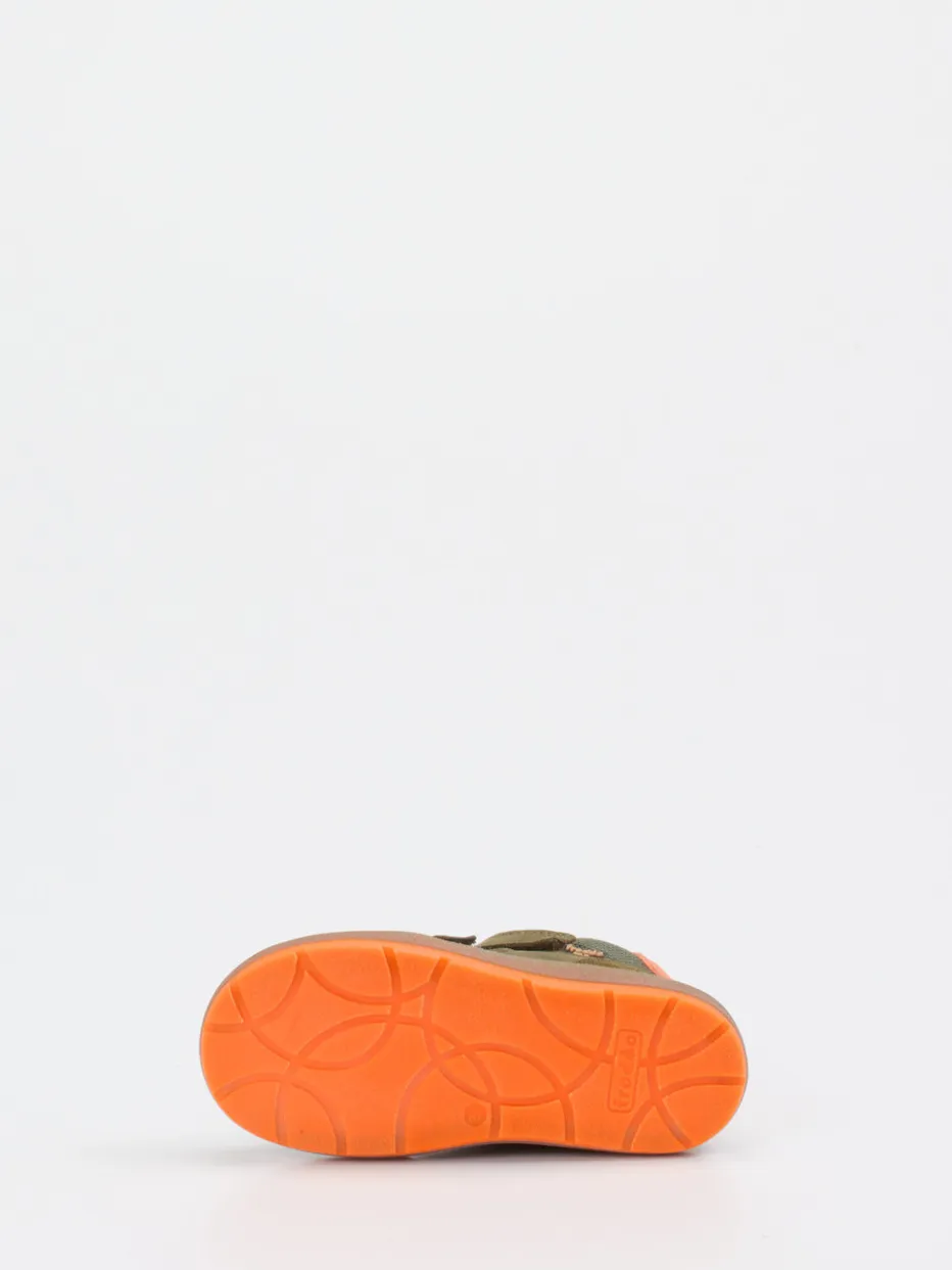 Bereit für jedes Abenteuer.Die Marke Froddo präsentiert mit diesen Lauflernschuhen ein outdoor-inspiriertes Kindermodell im High-Top-Design. Ideal für vielseitige Alltagseinsätze: Das weiche Nubukleder wird durch strukturierte Textileinsätze ergänzt und sorgt gemeinsam mit dem gepolsterten Fersenbereich für angenehmen Halt. Farblich setzen der Olivgrün-Grundton, die korallenfarbene Fersenkappe und orange Akzente auffällige Kontraste. Klettverschlüsse bieten eine einfache Handhabung, während die griffige Gummisohle Trittsicherheit gibt. Das Design zitiert aktuelle Color-Blocking- und Gorpcore-Trends. Froddo kombiniert stilbewussten Look mit durchdachter Kindgerechtigkeit.