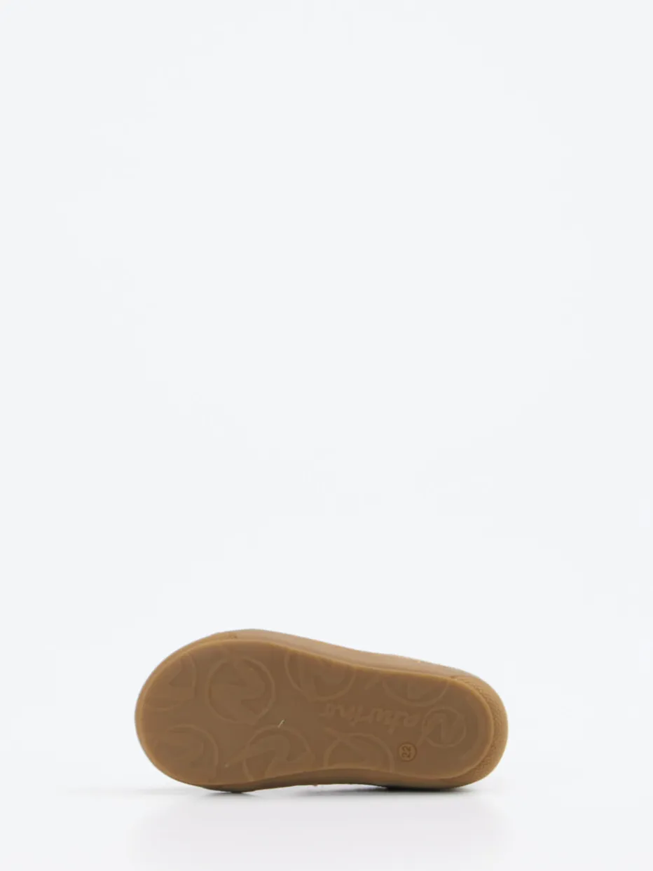 Stilvoll unterwegs – ab dem ersten Schritt.Naturino zeigt mit diesen Lauflernschuhen, wie alltagstauglicher Komfort und durchdachtes Design harmonieren. Ob beim Krabbeln, Stehen oder den ersten Schritten durchs Wohnzimmer: Das hochwertige Veloursleder, samtig-matt strukturiert, schmiegt sich sanft an kleine Kinderfüße. Die hellbraune Farbgebung wirkt natürlich und beruhigend, während florale Kontraststickereien liebevolle Akzente setzen. Die runde, knöchelhohe Silhouette mit verstärkter Zehenkappe und Schnürung bietet Halt und Bewegungsfreiheit zugleich. Die profilierte Gummisohle sorgt für Trittsicherheit auf glatten Böden. Inspiriert vom skandinavischen Design, passt der Look ideal zur Natural-Tones-Ästhetik der Saison. Ein Lauflernmodell, das Komfort und Stil kindgerecht vereint – mit der besonderen Qualität von Naturino.