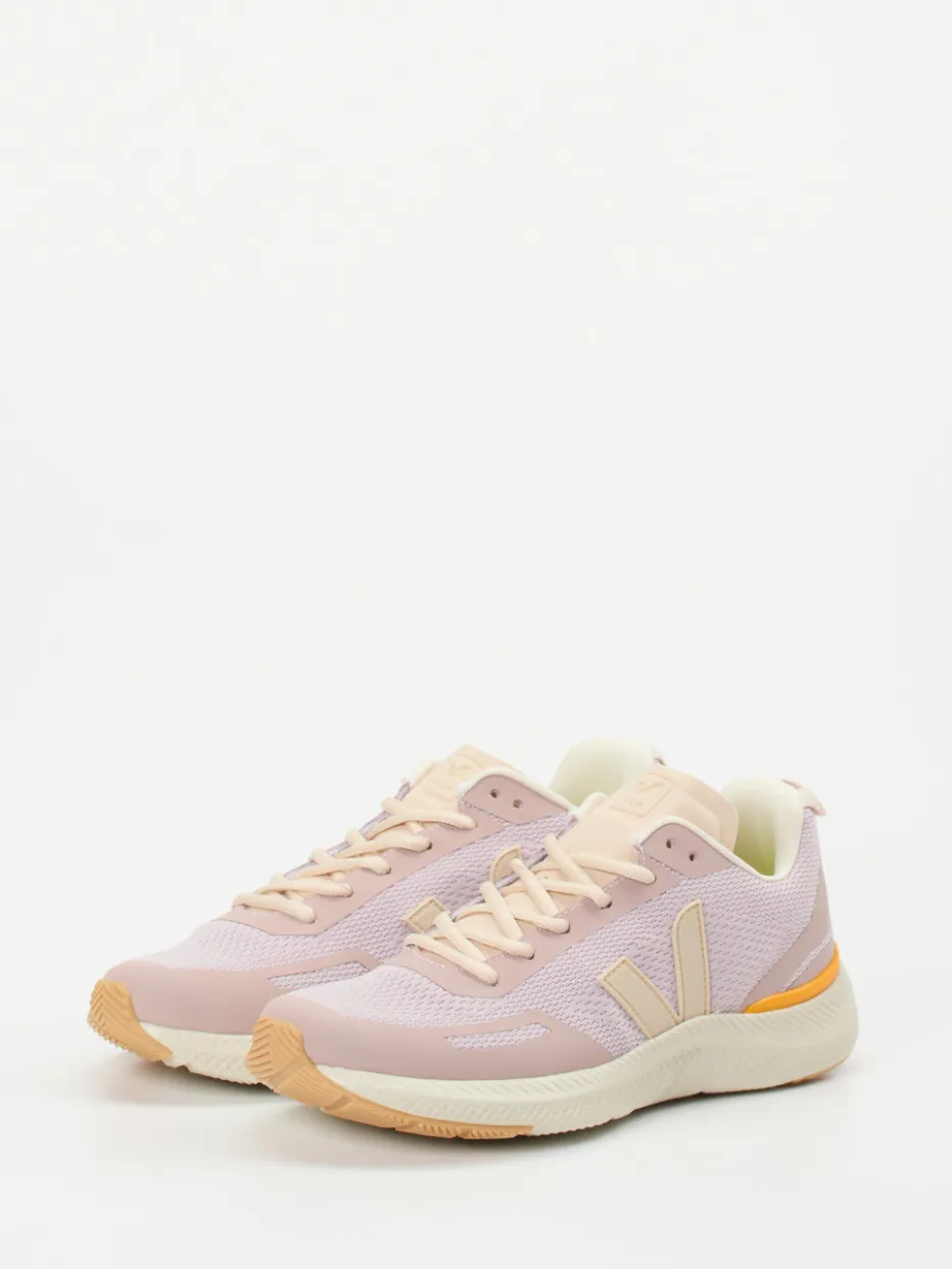 Pastelltrend für aktive Tage.Veja bringt mit diesem Damen-Laufsneaker einen vegan verarbeiteten Klassiker modern interpretiert zurück. Ob beim Stadtspaziergang oder im Fitnessstudio – das atmungsaktive Mesh-Obermaterial in zartem Rosé mit pfirsich-beigen und sonnengelben Akzenten sorgt für frischen Stil und funktionale Leichtigkeit. Die matte Textur, ein gepolsterter Einstieg sowie die verstärkte Ferse bieten ein angenehmes Tragegefühl. Dank Schnürung individuell anpassbar, unterstützt durch eine flexible Gummisohle mit griffigem Profil. Im angesagten Pastell-Look reiht sich das Modell perfekt in die Athleisure-Trends ein. Veja überzeugt mit nachhaltigem Design und vielseitiger Alltagstauglichkeit.