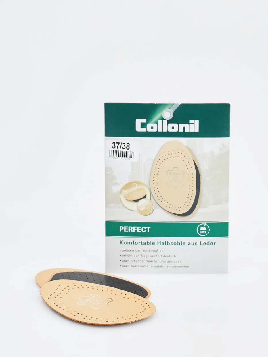 Die Perfect Lederhalbsohle von Collonil aus pflanzlich gegerbtem Leder sorgt für einen erhöhten Tragekomfort und polstert den Vorderfuß angenehm. Sie eignet sich durch die vorgefertigte Schneidelinie auch für zehenfreie Schuhe.
