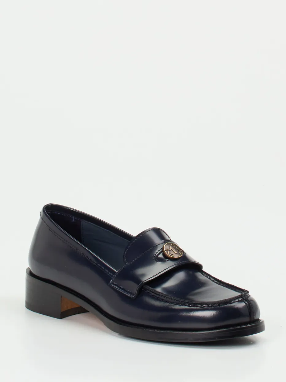 Dieser Damen-Loafer kombiniert glanzgestoßenes Leder in Nachtblau mit klassischer Silhouette und feinen Details – zeitlos stilvoll mit subtilem Luxusanspruch.