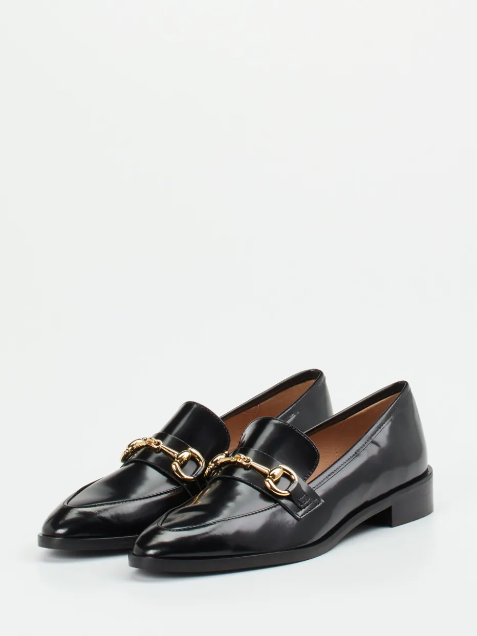 Dieser klassische Damen-Loafer vereint minimalistisches Design mit handwerklicher Finesse. Durch glänzendes Kalbleder und goldene Horsebit-Spange entsteht ein stilvoller Auftritt.