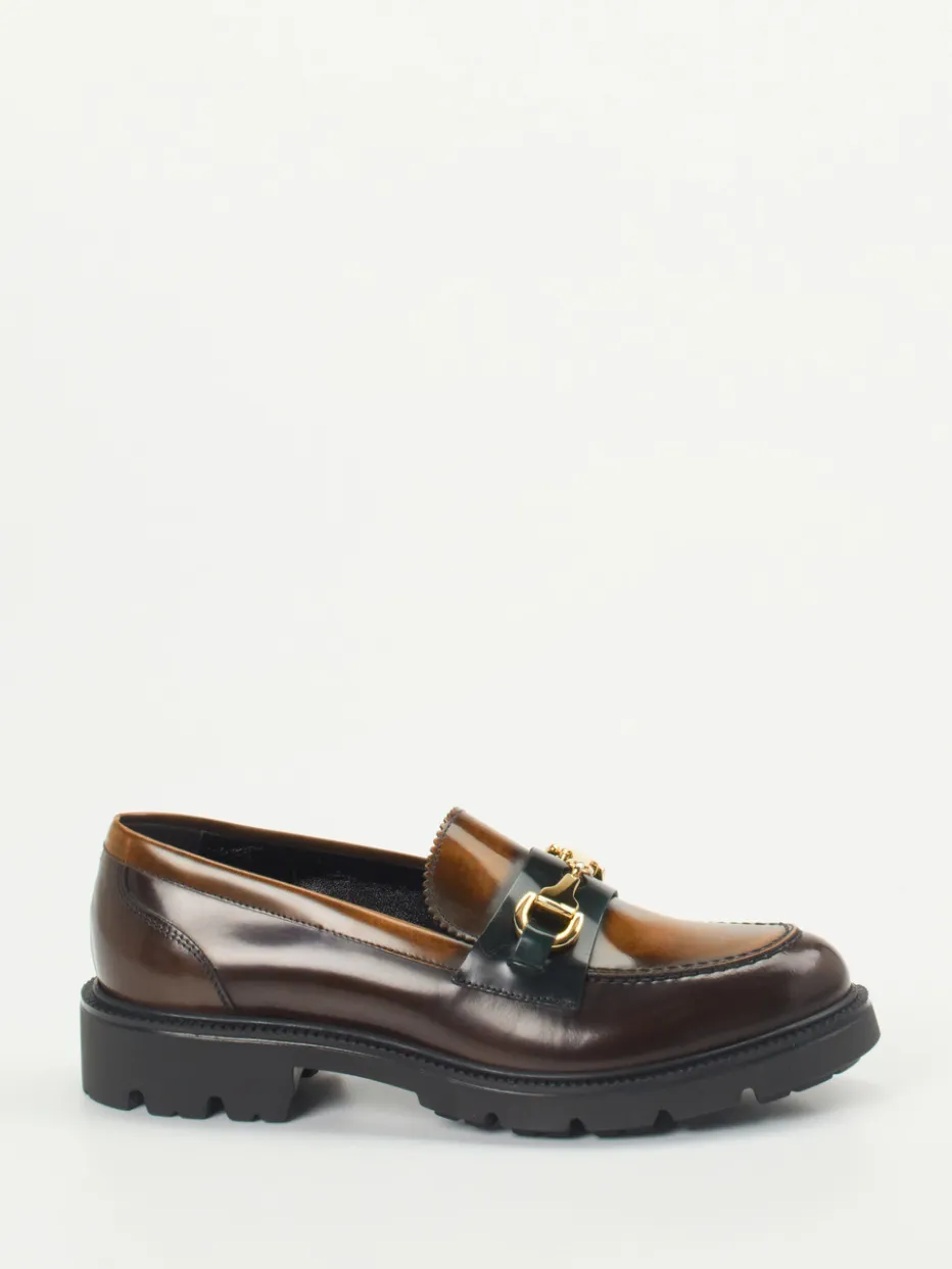 Der hochwertige Loafer verbindet glänzendes Kalbleder mit goldfarbener Spange und robuster Chunky-Sohle – ideal für elegante Looks mit modernem Twist.