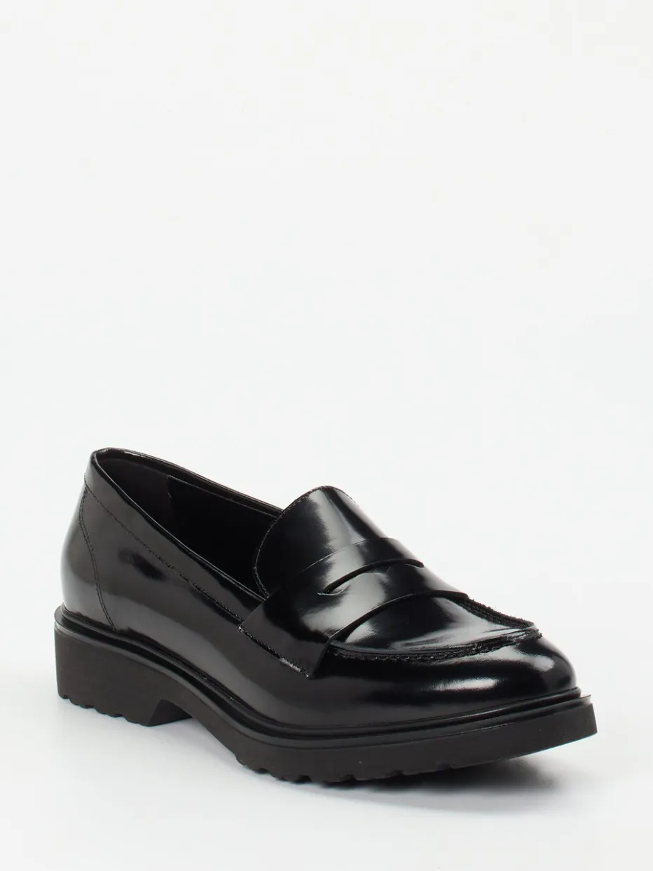 Urbaner Klassiker für Alltag und Büro.Konstantin Starke präsentiert einen stilvollen Loafer für Damen mit klarer Formsprache. Wenn der Bürotag souverän beginnt und in den Stadtbummel übergeht, bietet dieses Modell den passenden Look. Gefertigt aus edlem Hochglanzleder mit glänzender Oberfläche und sattschwarzer Färbung, strahlt der Schuh dezente Eleganz aus. Das Design überzeugt mit klassischer Form, Schlupfschuhkonstruktion und feinen Details wie Pennyschlitz und Ton-in-Ton-Nähten. Die robuste Profilsohle aus Gummi sorgt für sicheren Halt im urbanen Alltag. Der Style greift den Trend „Quiet Luxury“ gekonnt auf und passt perfekt zu minimalistischen Outfits wie Blazern oder Lederaccessoires. Ein modischer Allrounder mit markentypischem Qualitätsanspruch und langanhaltendem Komfort.