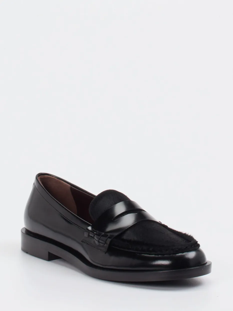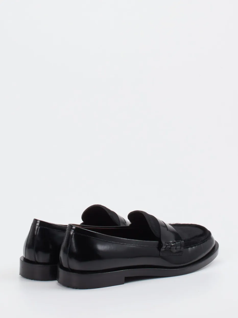 Dieser Loafer von Konstantin Starke verbindet edles Hochglanzleder mit strukturierter Felloptik zu einem stilvollen Statement moderner Klassik.