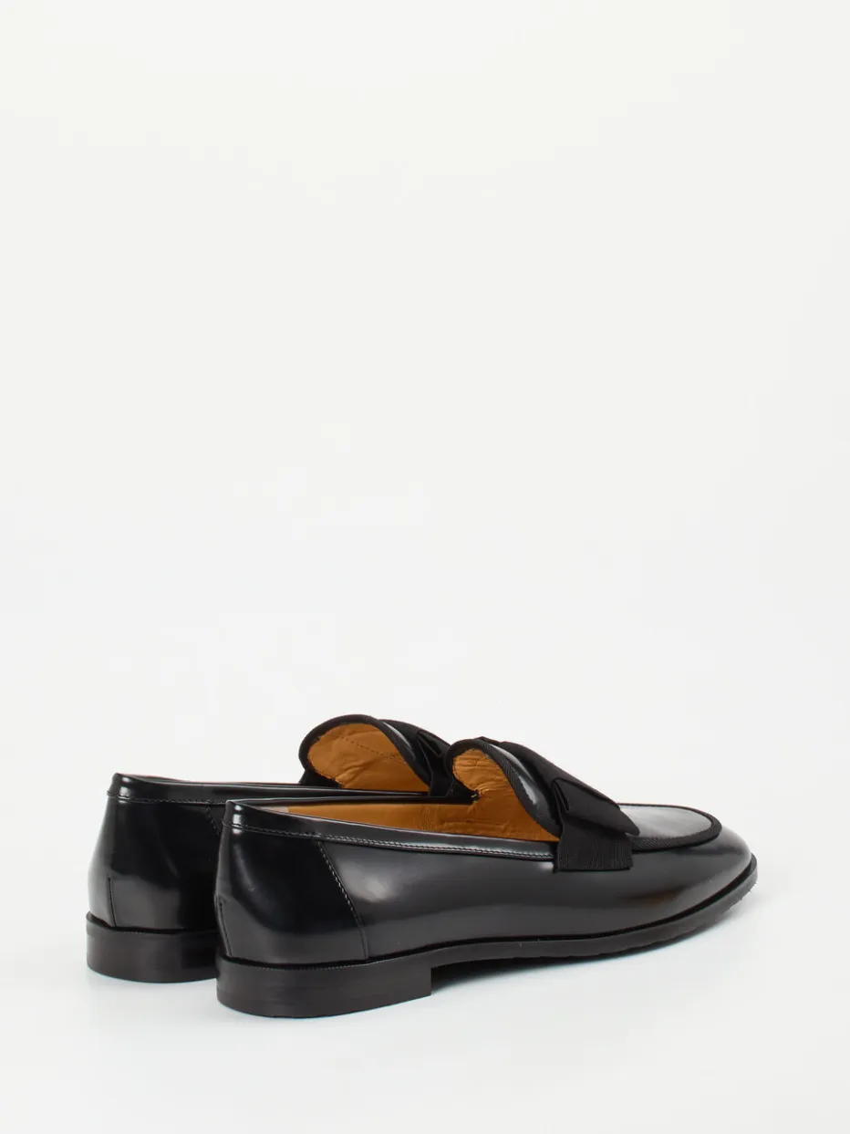 Ein femininer Slipper in edlem Schwarz, der den Preppy-Stil mit minimalistischer Eleganz verbindet. Das glänzende Kalbleder und die tonige Schleife setzen dezente Designakzente.