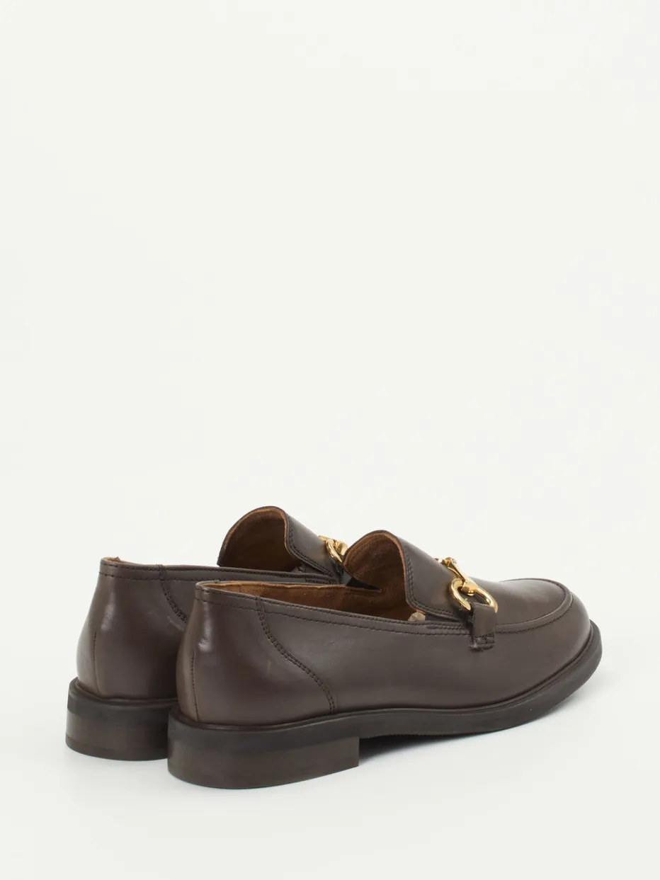 Stilvoll durch den Herbst.Paul Green präsentiert mit diesem Loafer eine elegante Damenwahl für Alltag und Business. Wenn das Outfit Souveränität verlangt, sorgt der klassische Loafer aus matt schimmerndem Kalbleder in Dunkelbraun für den passenden Auftritt. Die goldfarbene Zierspange auf dem Blatt setzt einen stilvollen Akzent, während der flache Blockabsatz und kleine Elasteinsätze Komfort und Alltagstauglichkeit bieten. Die Silhouette bleibt zurückhaltend-modern, inspiriert vom Preppy Chic und dem Trend „Quiet Luxury“. Kombiniert mit Blazer und Lederhandtasche entsteht ein stilsicherer Look für viele Gelegenheiten. Paul Green steht für zeitlose Eleganz mit femininer Raffinesse.