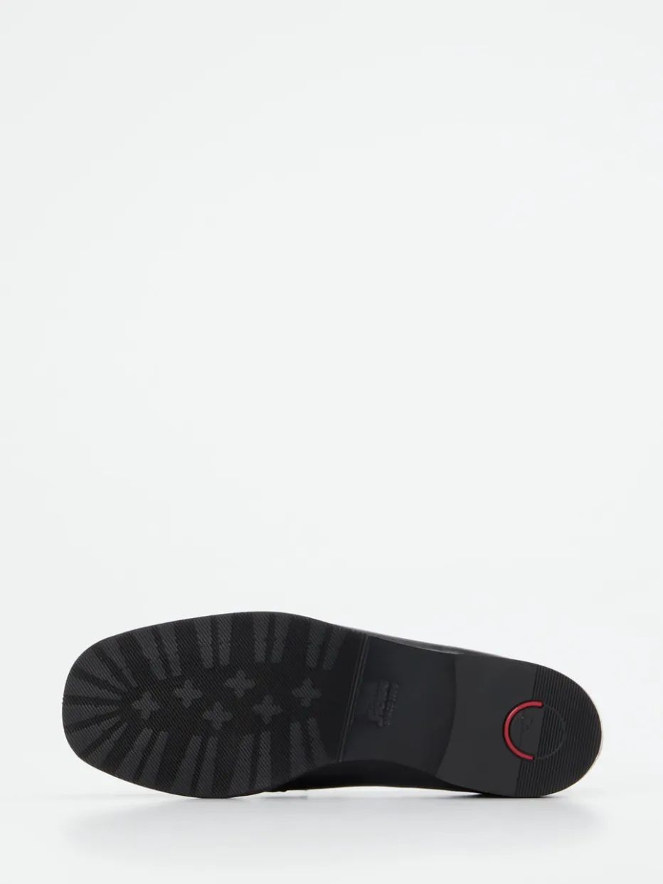 Moderner Klassiker mit Statement-Kette.Der Damen-Loafer von Sioux überzeugt als stilvolle Wahl für Business- und Freizeit-Outfits. Sein weiches schwarzes Kalbleder mit glänzender Oberfläche trifft auf eine klassische, flache Silhouette im Carrée-Leisten. Die auffällige Gliederkette in schwarzem Metall-Look setzt einen modernen Akzent im Sinne des „Quiet Luxury“-Trends. Zwei Elasteinsätze bieten bequemen Einstieg, das gepolsterte Supersoft-Fußbett erhöht den Tragekomfort zusätzlich. Eine leicht profilierte Gummisohle sorgt für Flexibilität im Alltag. Der Look passt hervorragend zu einem Trenchcoat oder einer schlanken Anzughose. Ein souveräner Loafer mit hochwertiger Verarbeitung im charakteristischen Stil von Sioux.