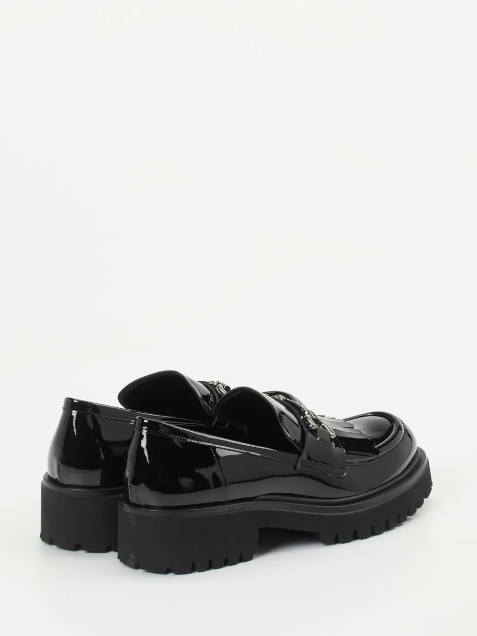 Dieser Statement-Loafer von Konstantin Starke kombiniert glänzendes Kalbleder mit markanter Chunky-Sohle und silberner Detailspange – ein stilsicherer Akzent im modernen Look.